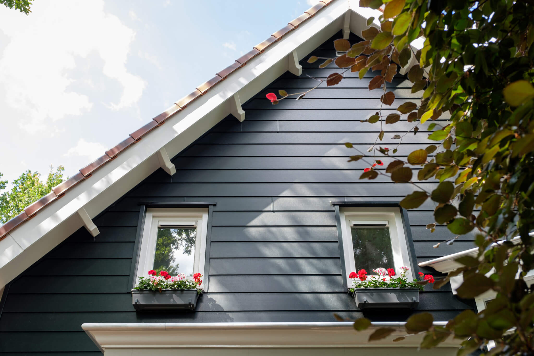 Heeft u liever geen houtnerf, maar een matte structuur voor uw gevelbekleding, dan is er ook Keralit Pure Colours unikleuren met effen, matte structuur. Potdekselpanelen zijn overlappende panelen die uitstekend passen bij zowel moderne als klassieke woningen. Door het overlappen van de panelen ontstaat een lichte schaduw en worden zachte lijnen gevormd.