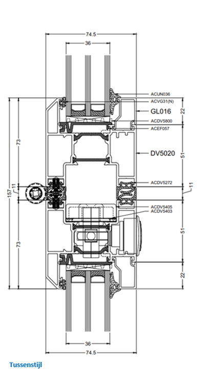 - Inbouwdiepte buitenkader 74,5 mm