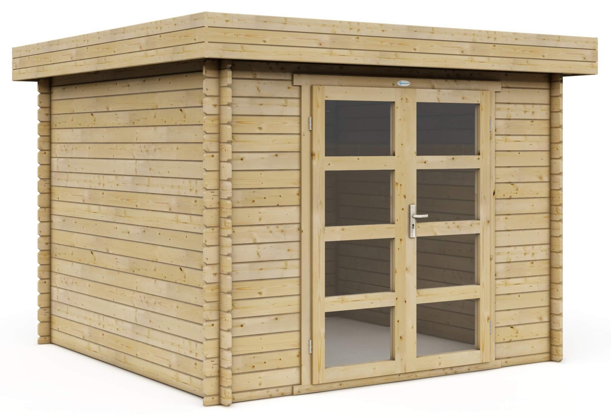 - Blanke en geïmpregneerde blokhutten veelal uit voorraad leverbaar