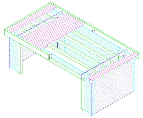Hier worden zowel de binnen- als de buitenzijden van de wanden gecoat, maar daarnaast ook de dakbalken, dakplanken en de ramen & deuren.