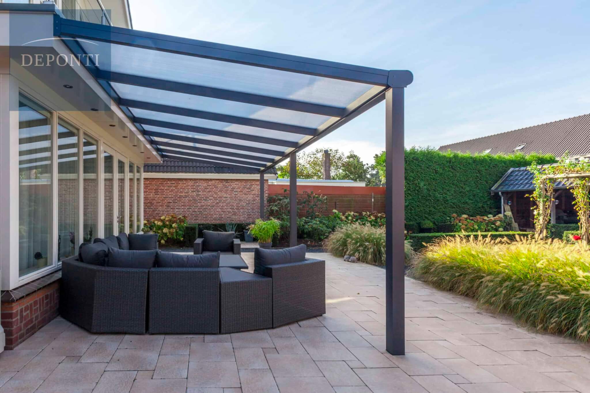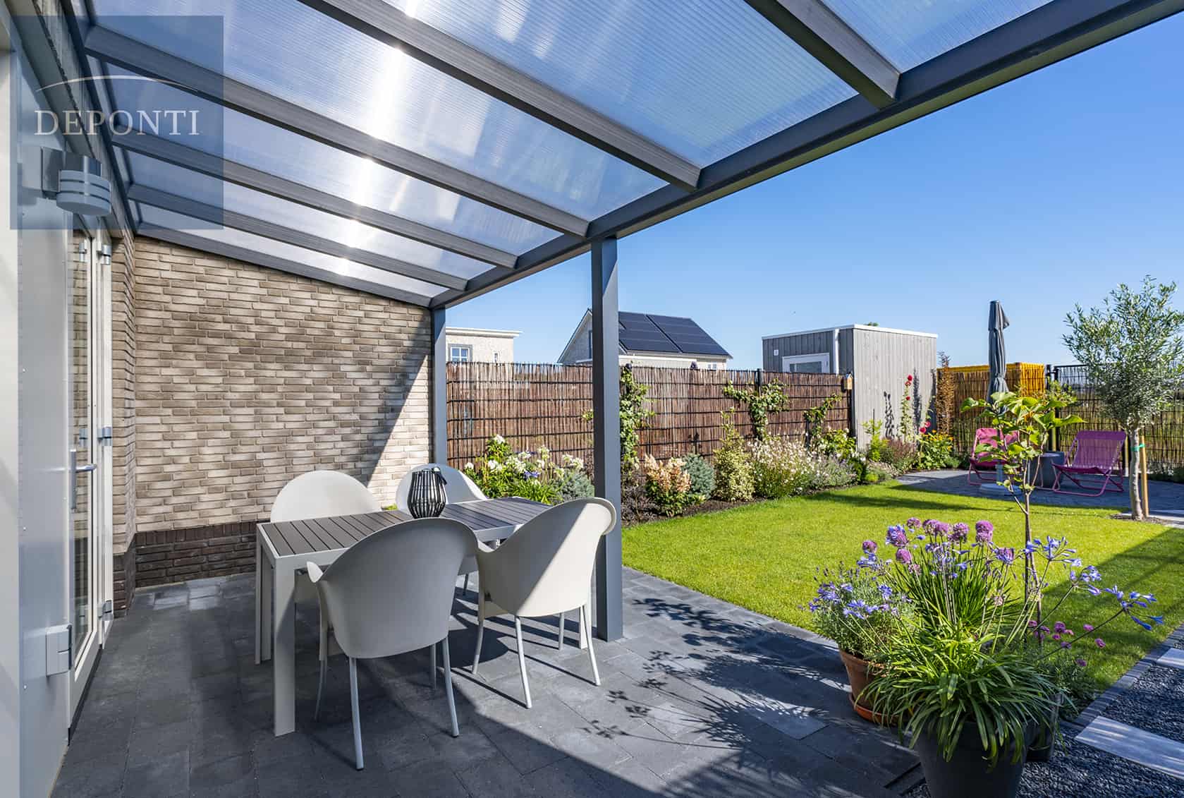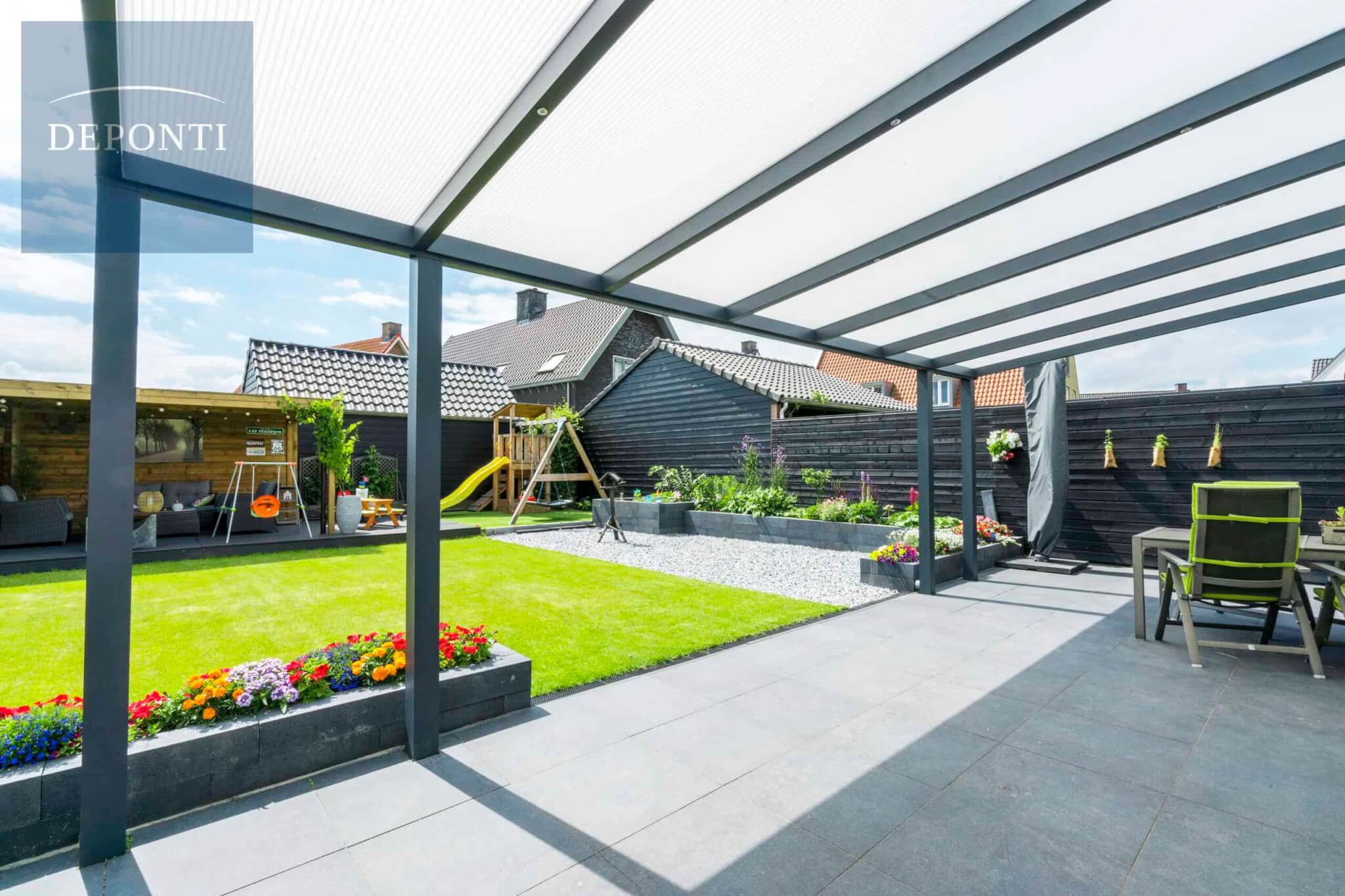 Een terrasoverkapping afgewerkt tot in de perfectie. Geheel af te stemmen op uw wensen en passend bij uw woning. Ontmoet de Bosco van Deponti.