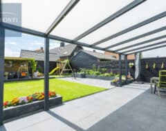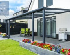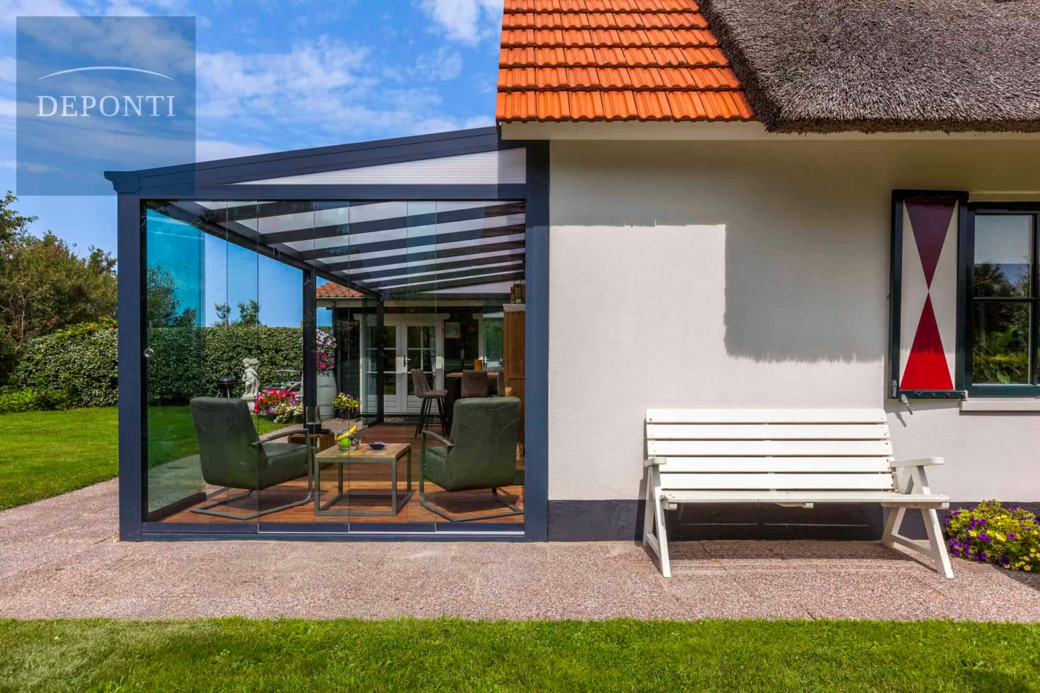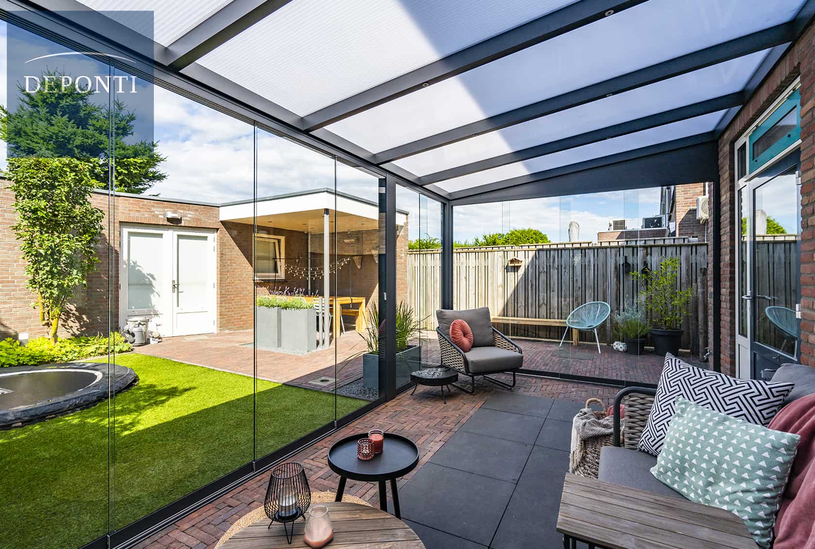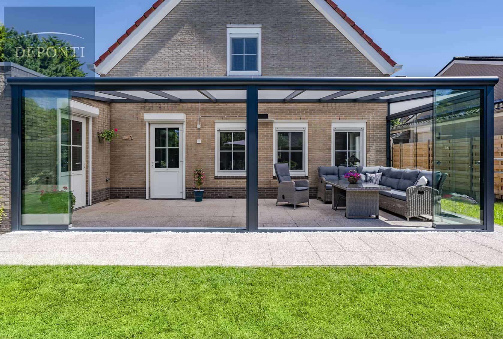 Een terrasoverkapping afgewerkt tot in de perfectie. Geheel af te stemmen op uw wensen en passend bij uw woning. Ontmoet de Bosco van Deponti.
