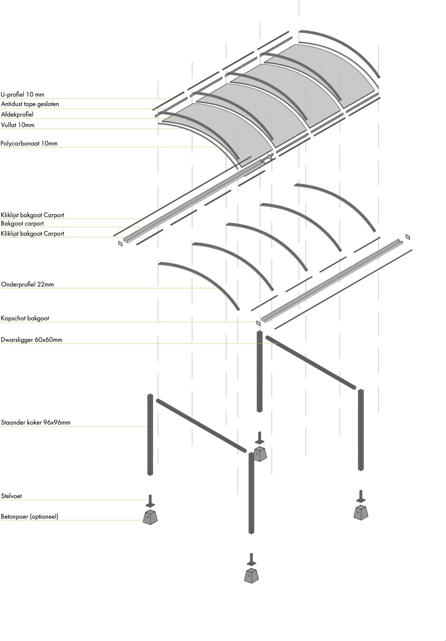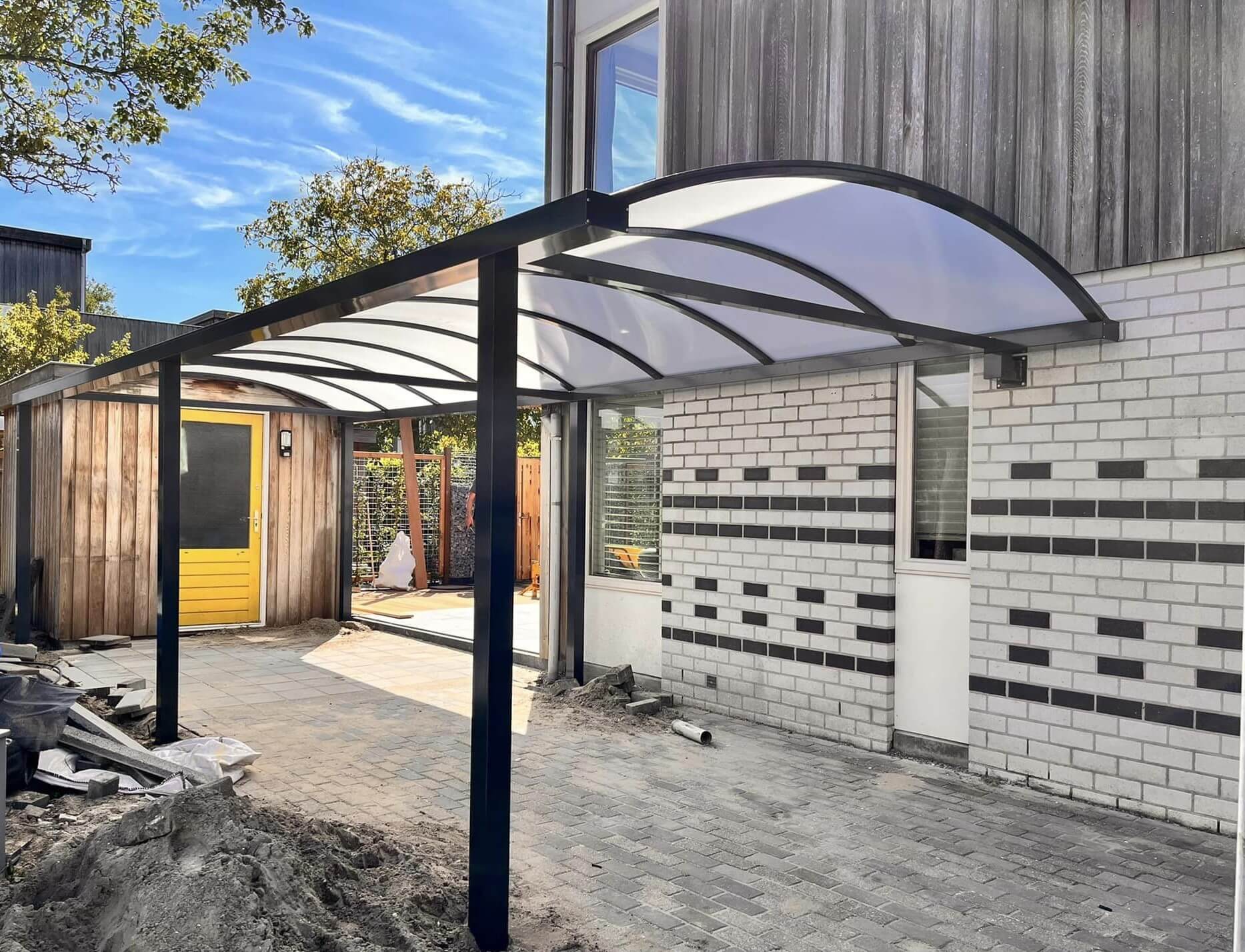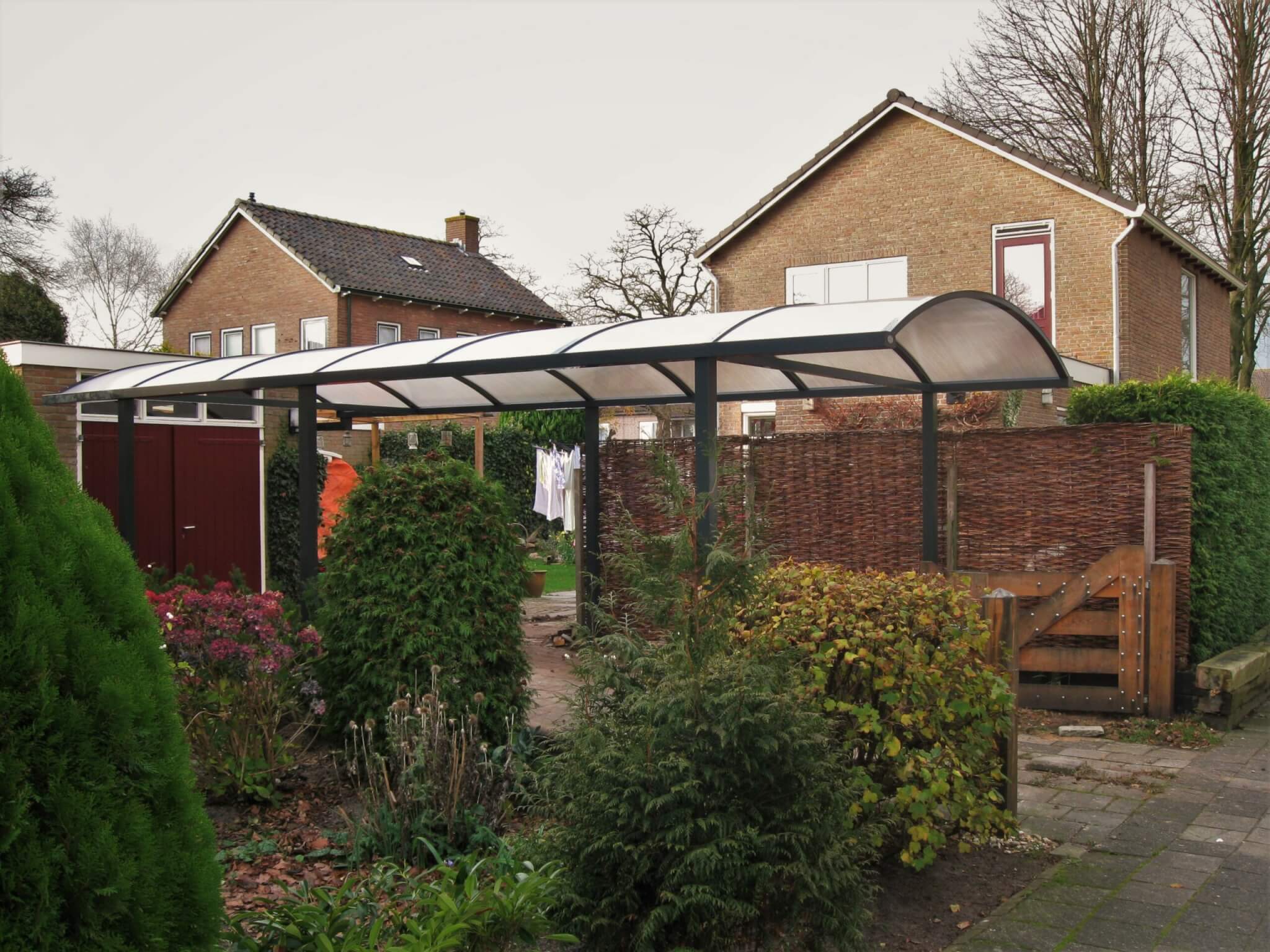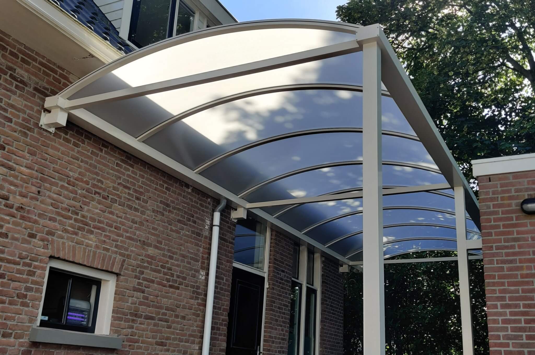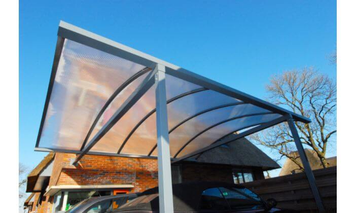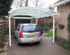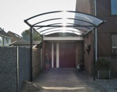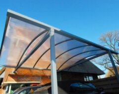 Compleet aluminium carport systeem. Verkrijgbaar in verschillende uitvoeringen en kleuren. Perfecte bescherming voor uw auto. Onze carports zijn van een hoogwaardige kwaliteit met een strakke afwerking. De Pext carport’s worden in eigen fabricagehal op maat gezaagd en voorbereid op de montage. Het frame van onze veranda’s is gemaakt van een speciaal profielsysteem uit duurzaam aluminium met een Qualicoat gecertificeerde poedercoating. De dubbelwandige 10 mm Polycarbonaat platen zijn onder extreme omstandigheden praktisch onbreekbaar (storm, hagel, sneeuw en vorst) en is hiermee sterker dan glas.