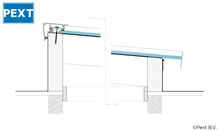 - Aluminium lichtstraat profielsysteem voor de beglazing in RAL7016 (antraciet), RAL9005 (zwart) of RAL9010 (wit).