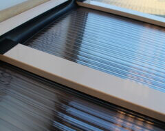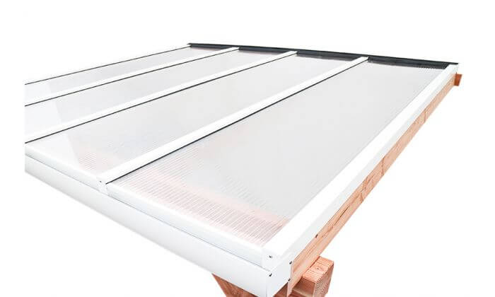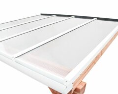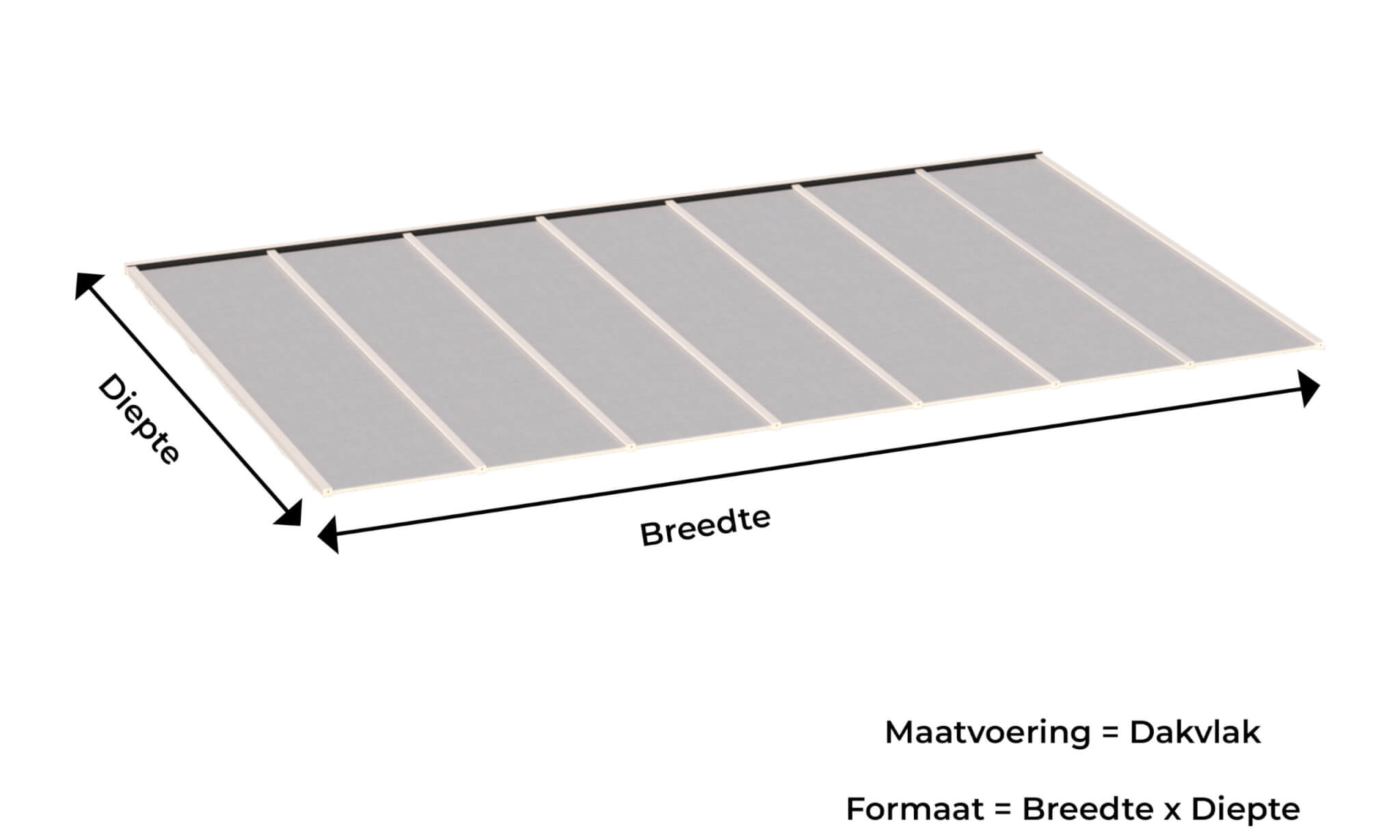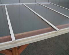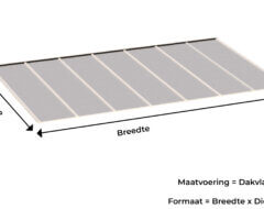 Dit daksysteem is bedoelt voor montage op een houten onderconstructie. Hierbij adviseren we i.v.m. de opleg minimaal balkhout van 60 mm breed toe te passen. Het pakket wordt geleverd met Polycarbonaatplaten van 980mm en 1050mm breed waardoor vele standaard maten beschikbaar zijn, daarnaast is het mogelijk om elk pakket op maat te bestellen. Hierbij worden alle platen en profielen evenredig op breedte gemaakt.