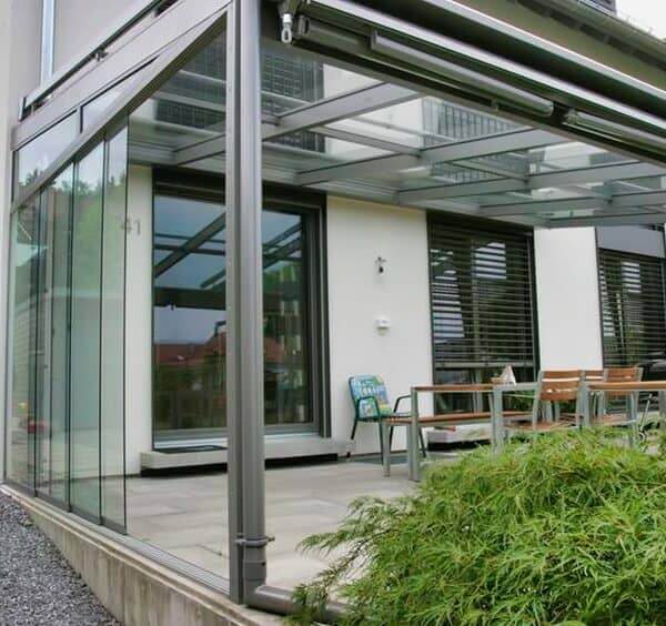 De glazen panelen zijn verkrijgbaar in verschillende hoogte- en breedtematen, kunnen in drie tot zes sporen lopen en hebben geen omlijsting; ze bieden daarom een onbelemmerd uitzicht op uw tuin. Daarnaast beschermt een glazen schuifwand ook tegen weer en wind. Zo geniet u, óók met minder mooi weer, van het ultieme buitengevoel.