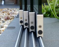 De glazen schuifwanden kunnen optioneel voorzien worden van additionele accessoires zoals plakhandgrepen, borstels en meenemers.