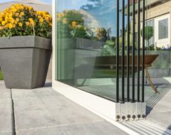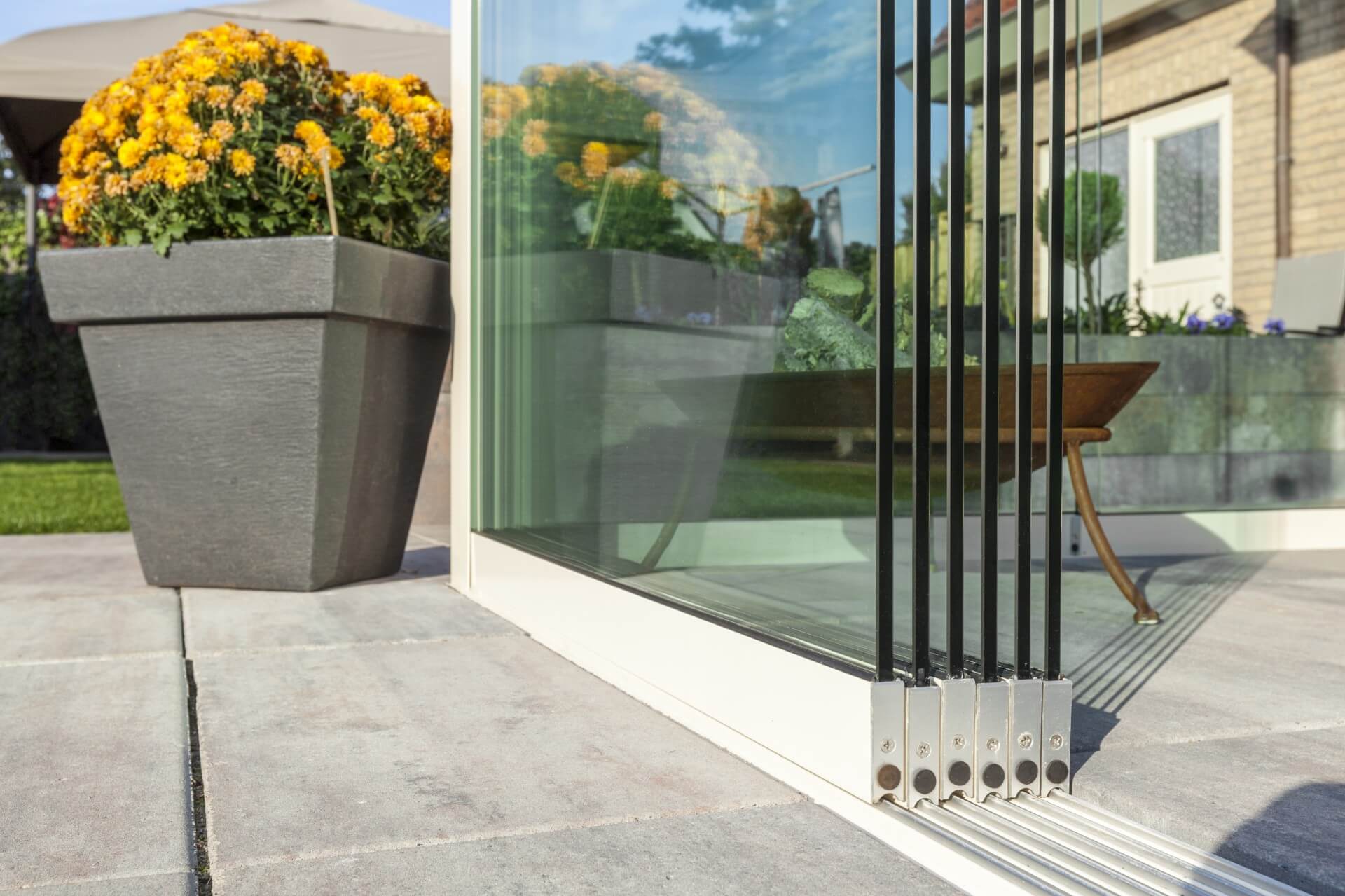 De glazen panelen zijn verkrijgbaar in verschillende hoogte- en breedtematen, kunnen in drie tot zes sporen lopen en hebben geen omlijsting; ze bieden daarom een onbelemmerd uitzicht op uw tuin. Daarnaast beschermt een glazen schuifwand ook tegen weer en wind. Zo geniet u, óók met minder mooi weer, van het ultieme buitengevoel.