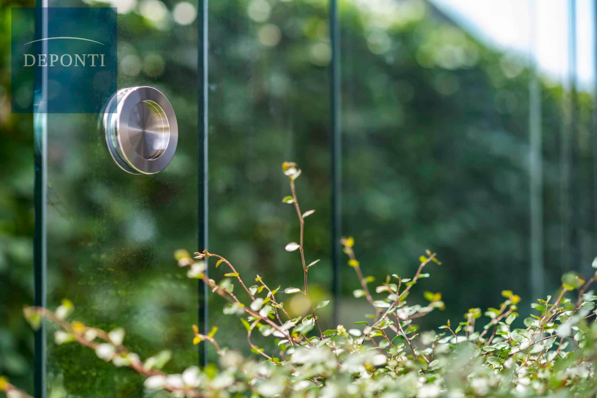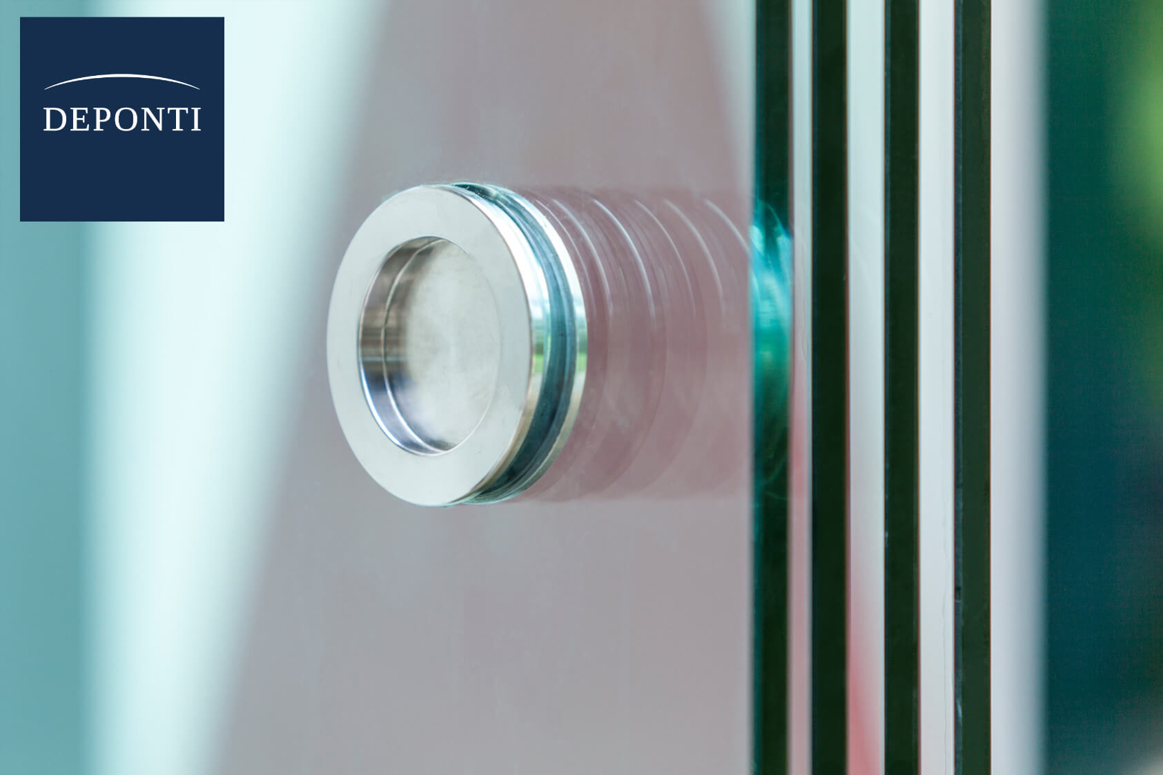 Naast standaard glaspanelen heeft Deponti ook glaspanelen met een geslepen en gepolijst handvat gat van 50mm in haar assortiment. Daarbij wordt automatisch een bijpassend tweezijdig indraaihandvat meegeleverd. Dat zorgt voor een glaswand met perfecte afgewerkt en luxe handvat.