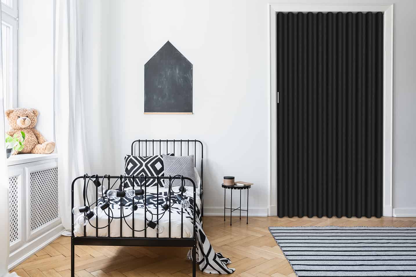 Bij deuren vanaf 10 plooien (vanaf 1521 mm) wordt de magneetplaat vervangen door een uitwendige voetstop om de deur open te houden. Bij vouwwanden met isolatie is dit al vanaf 9 plooien (vanaf 1361 mm). Dit is zonder meerprijs. Is uw kunstleren vouwwand minder dan 9 plooien (met isolatie) of minder dan 10 plooien (zonder isolatie) en wilt u toch een extra voetstop? Dit kan voor een meerprijs en kunt u aangeven bij uw bestelling.
