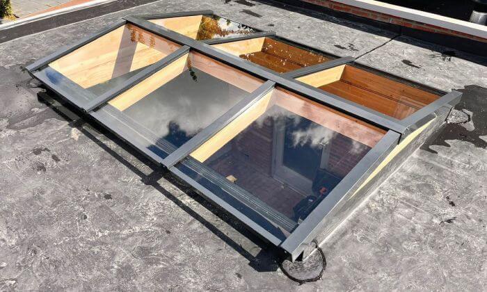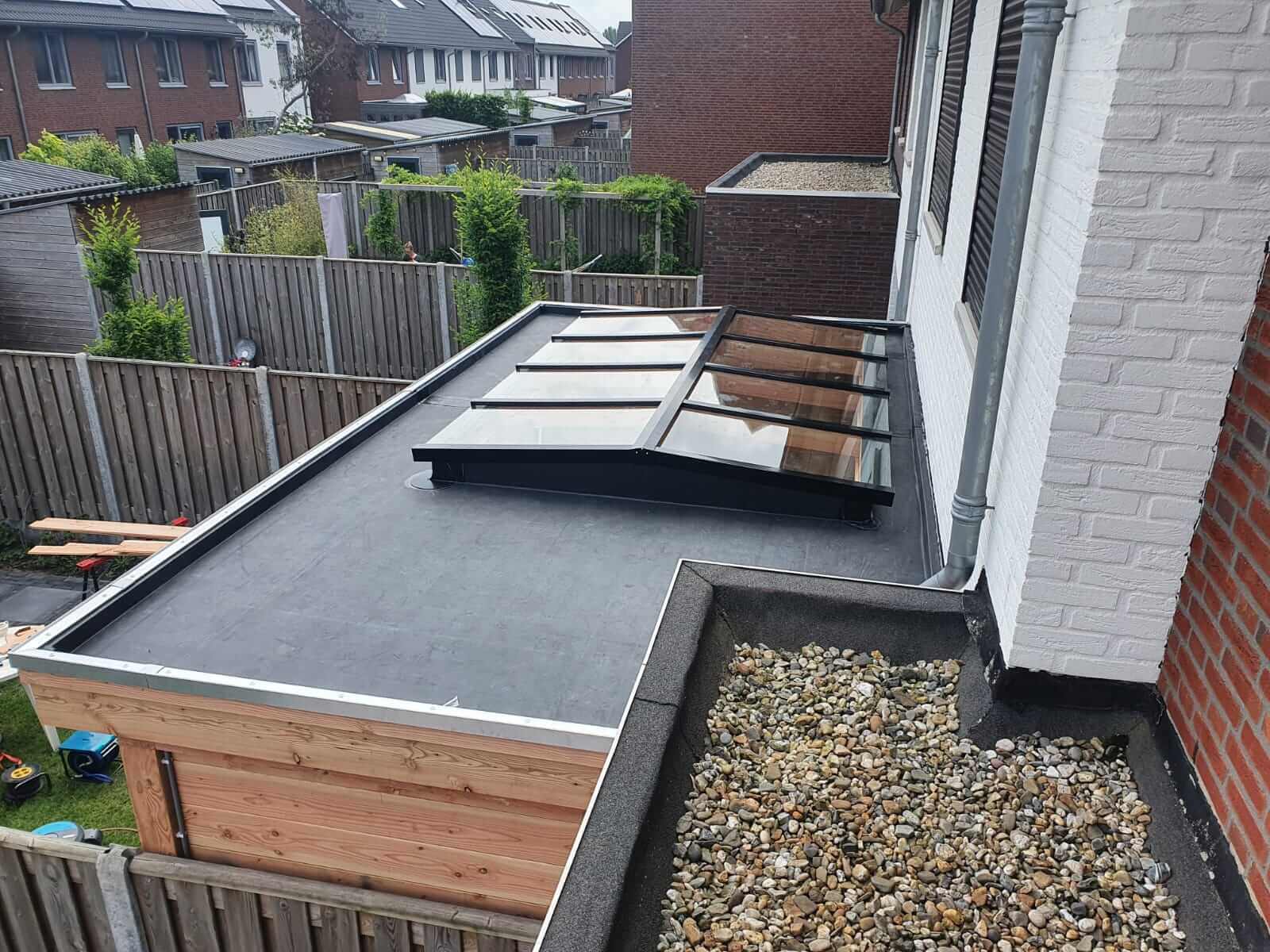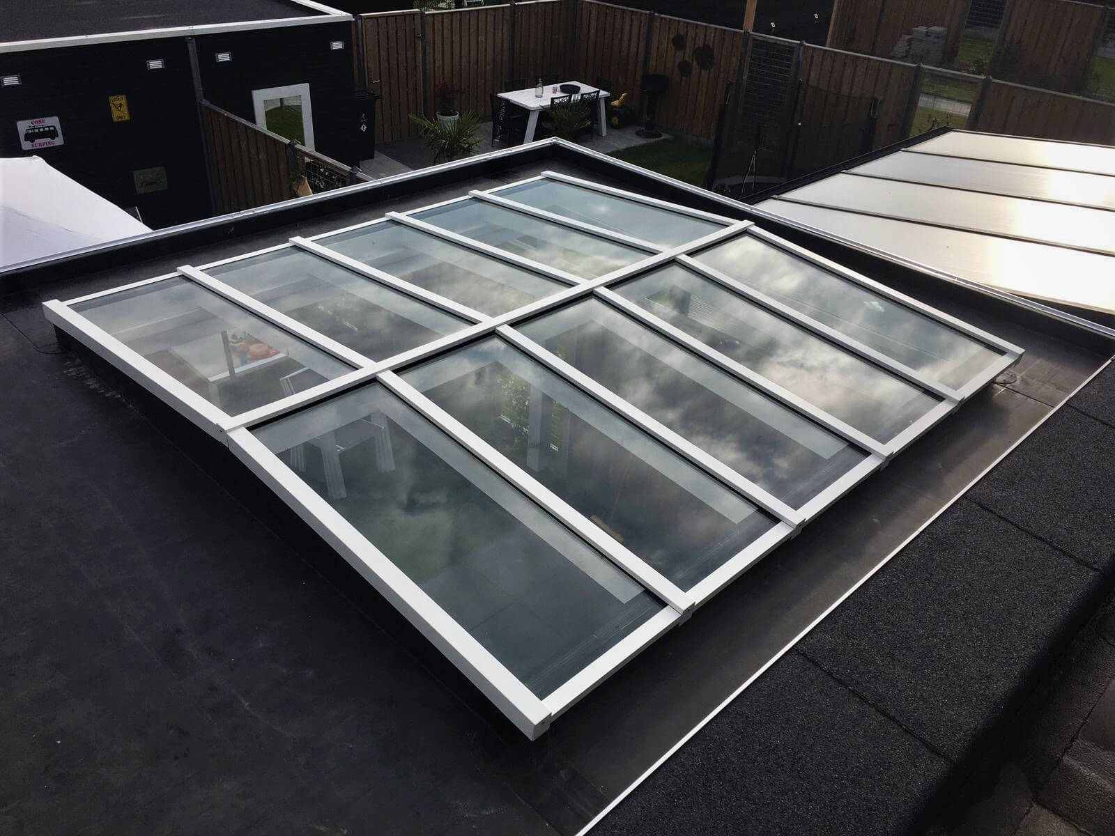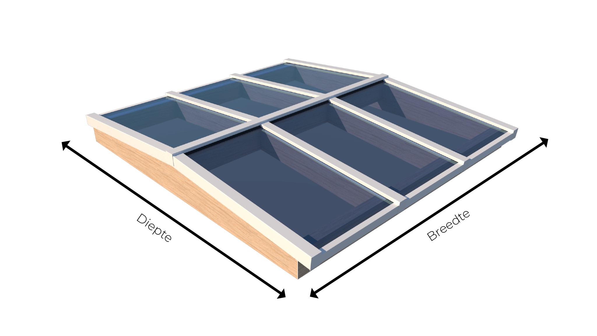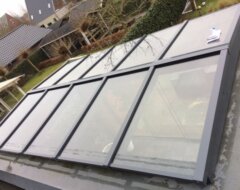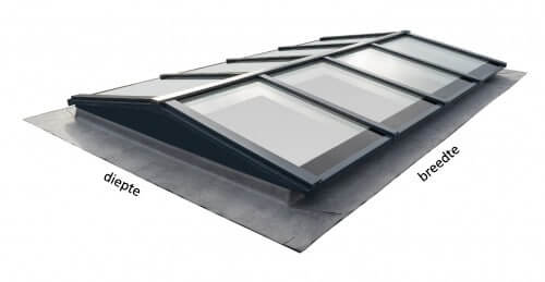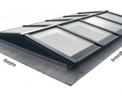 - Aluminium lichtstraat profielsysteem voor de beglazing in RAL7016 (antraciet), RAL9005 (zwart) of RAL9010 (wit);
