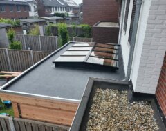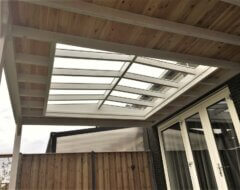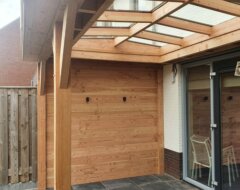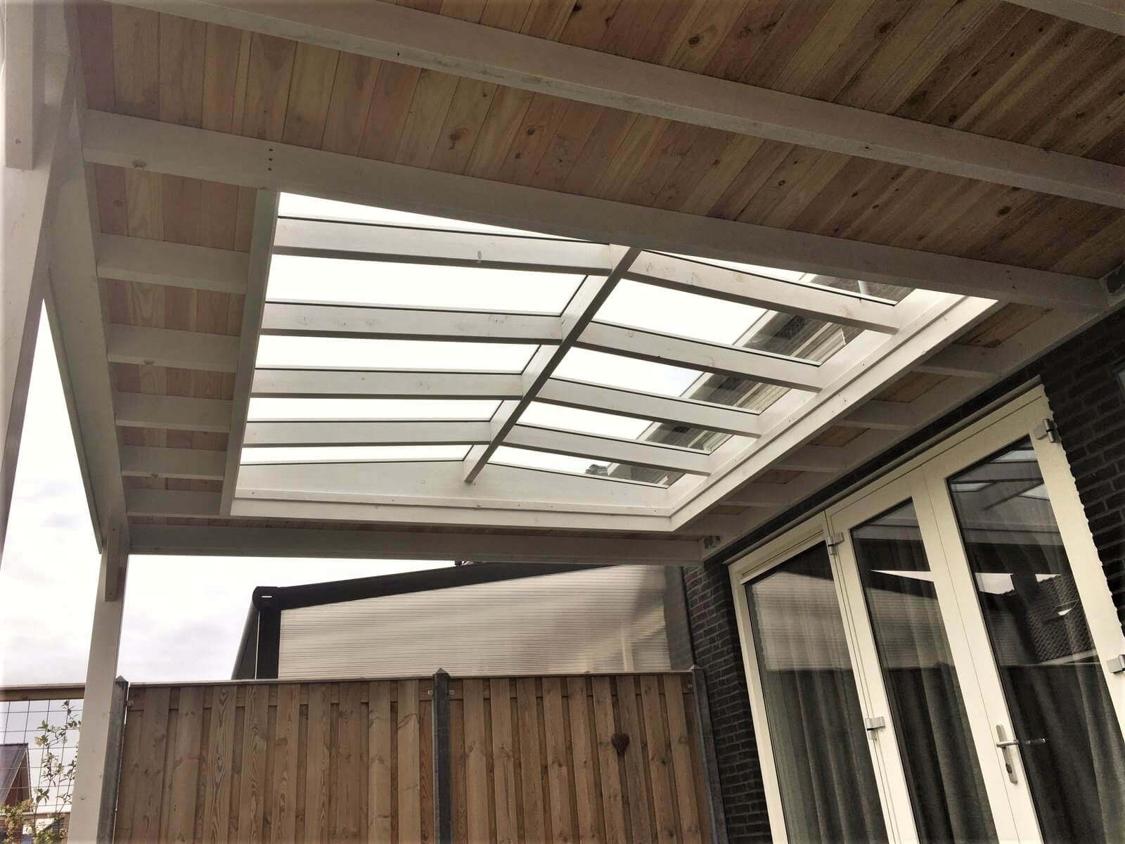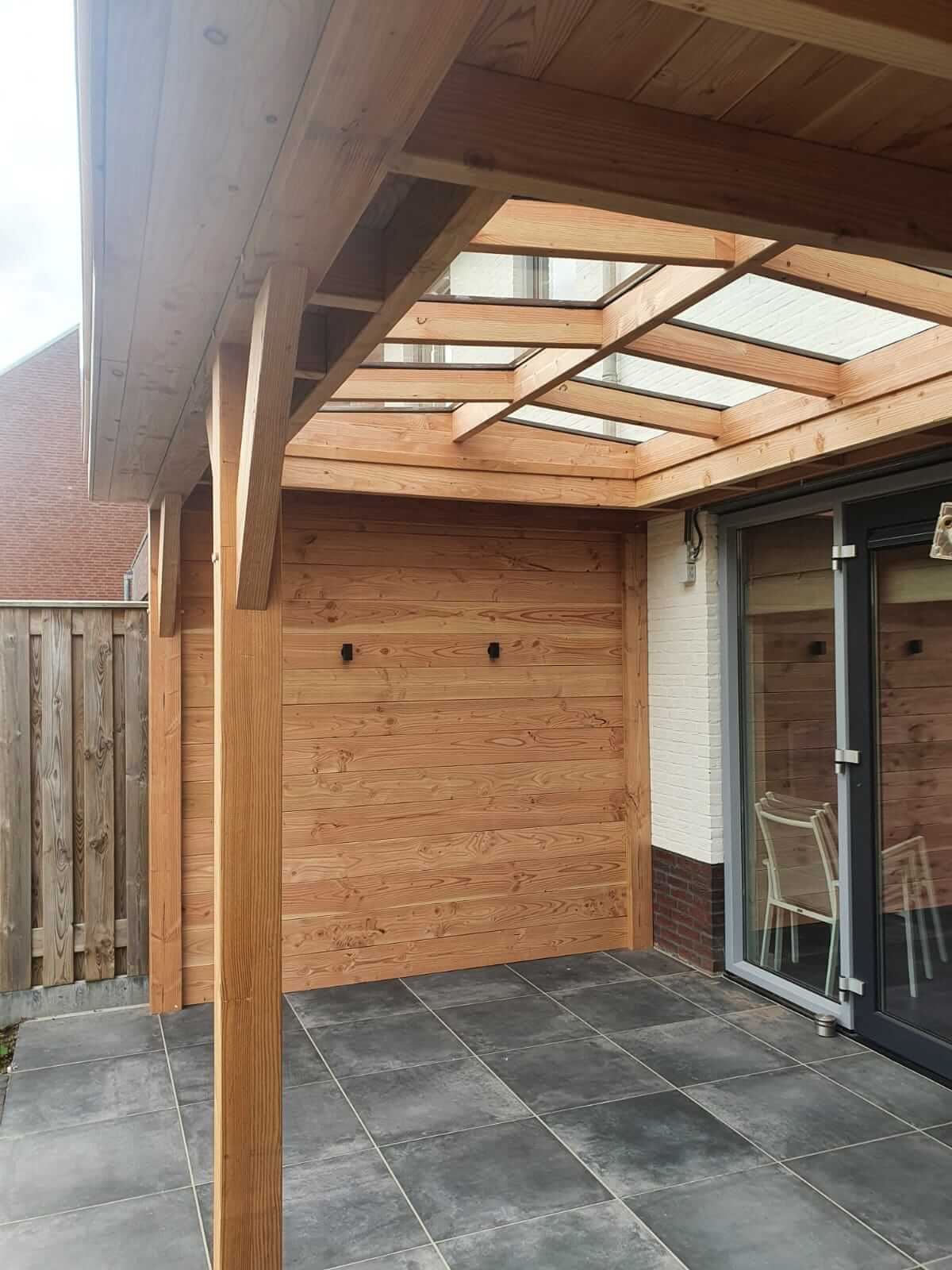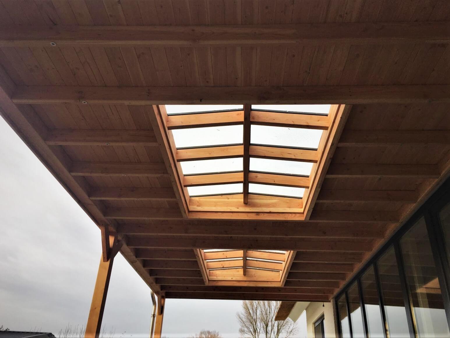 - Douglas houten onderconstructie: opstandbalk, liggers en nokbalk;