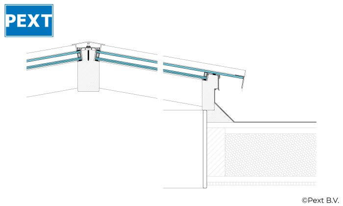 - Aluminium lichtstraat profielsysteem voor de beglazing in RAL7016 (antraciet), RAL9005 (zwart) of RAL9010 (wit).