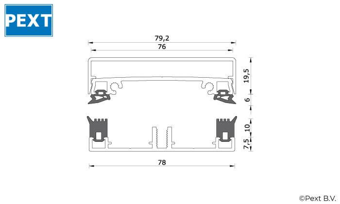 Onderprofiel Solar 7,5 mm + met rubbers + afdekprofiel Solar + kliklijst midden – 78 mm