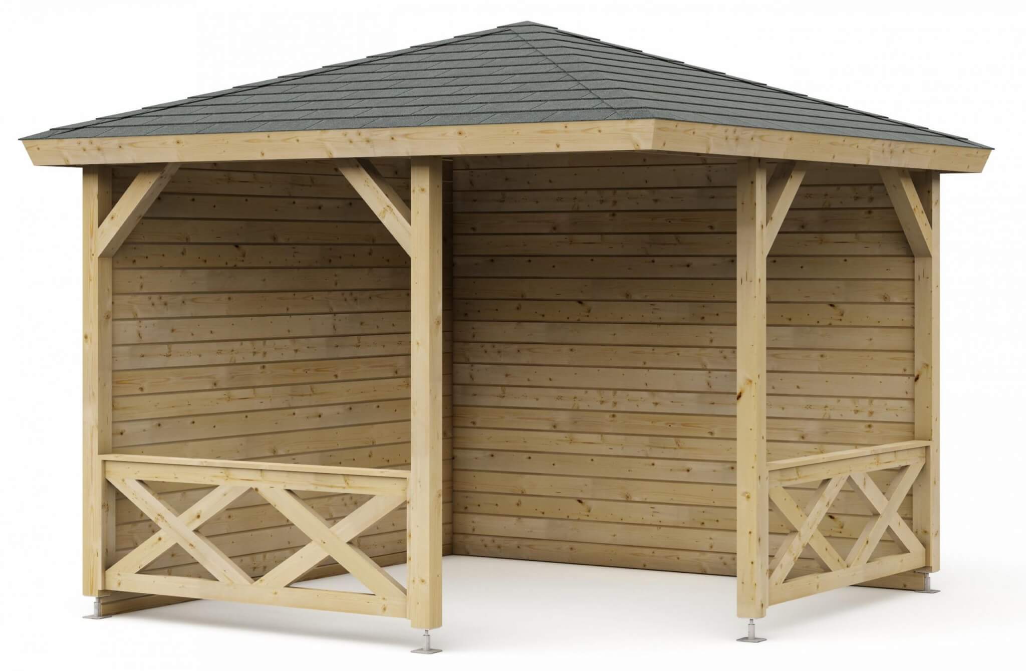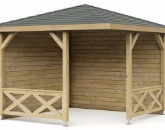 De paviljoens hebben een massief gekruisd hekwerk, een fijne hoge doorloophoogte en 9 x 9 cm palen inclusief stelvoeten en schoren. Daarnaast bestaat het dak uit voorgemonteerde dakelementen en is dus gemakkelijk te monteren!