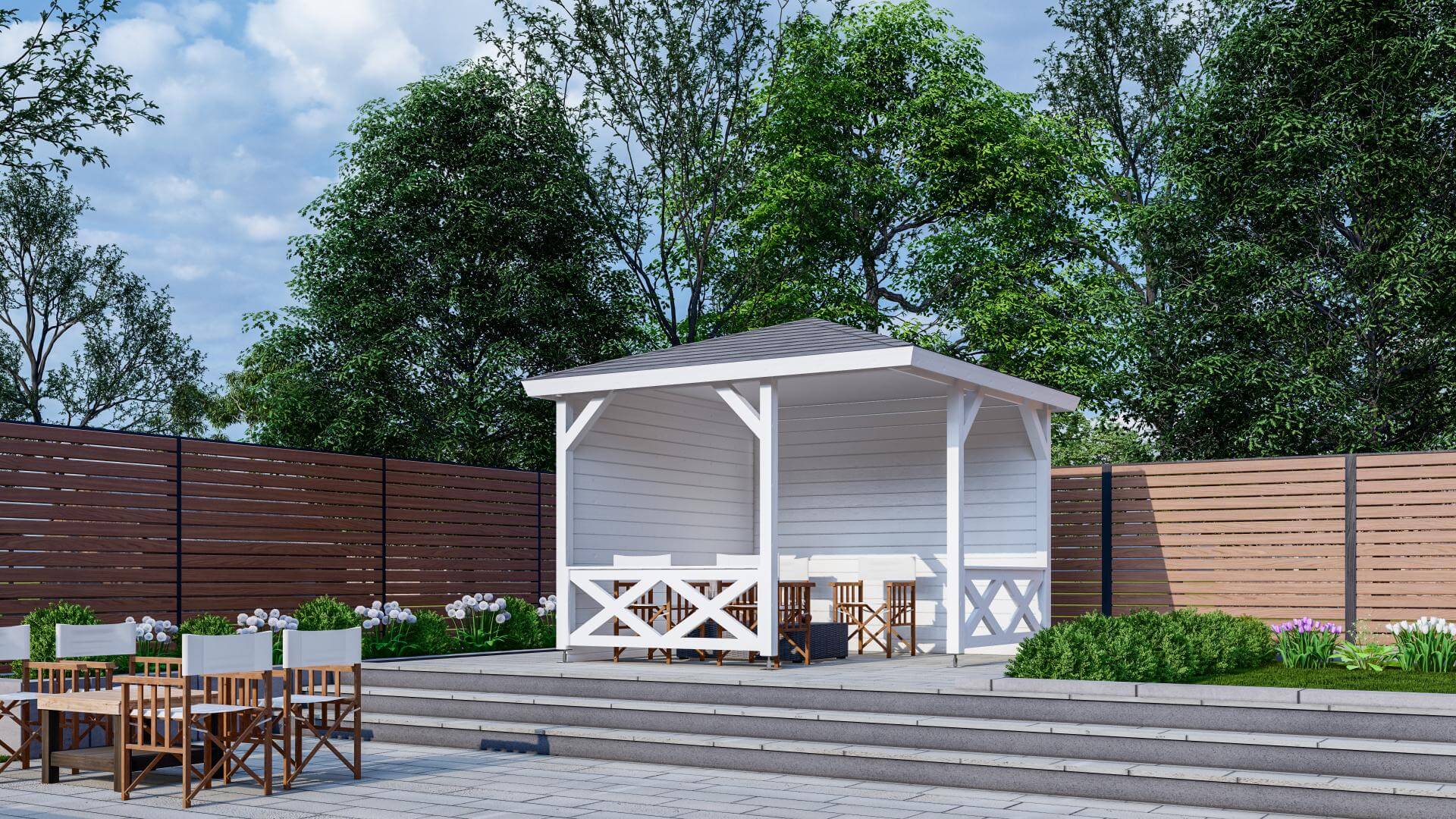 De standaard paviljoens zijn uitermate geschikt om heerlijk onder te genieten uit de zon in de zomer, of beschut in het najaar.