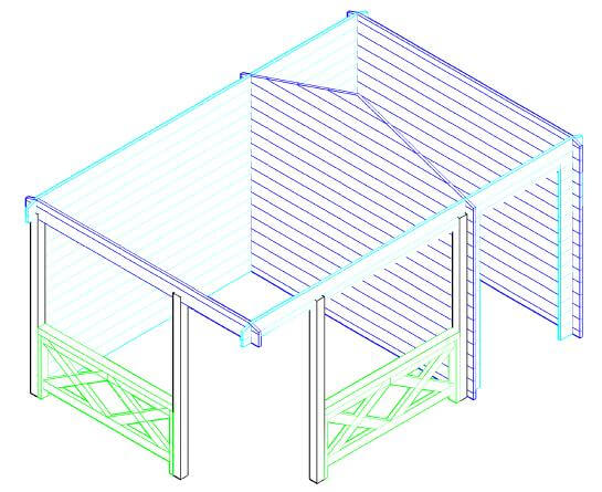 Hier worden zowel de binnen- als de buitenzijden van de wanden gecoat, maar daarnaast ook de dakbalken, dakplanken en de ramen & deuren.