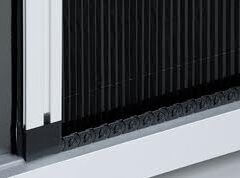 De Plisséhordeur heeft een kunststof kettingschakel die wordt geleid door een aluminium bovenprofiel en loopt over een kunststof dorpel van 4 mm. Deze ketting verdwijnt bij het inschuiven van de deur in de achterzijde van de aluminium cassette.