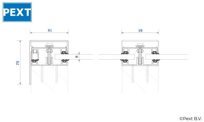 Het advies is om 4.4/2 of 5.5/2 veiligheidsglas toe te passen, dit graag aangeven als opmerking bij uw bestelling, zodat de juiste montageschroeven worden geleverd.