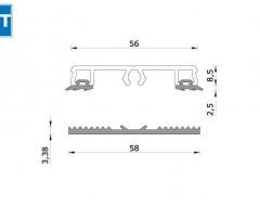 – Afdekprofiel, brut, schroefbaar met beglazingsrubbers, 58 mm breed