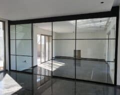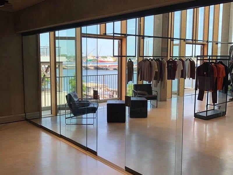 - Het glas wordt op de gewenste maat geleverd (systeembreedte tot 3300mm, hoogte tot 2700mm)