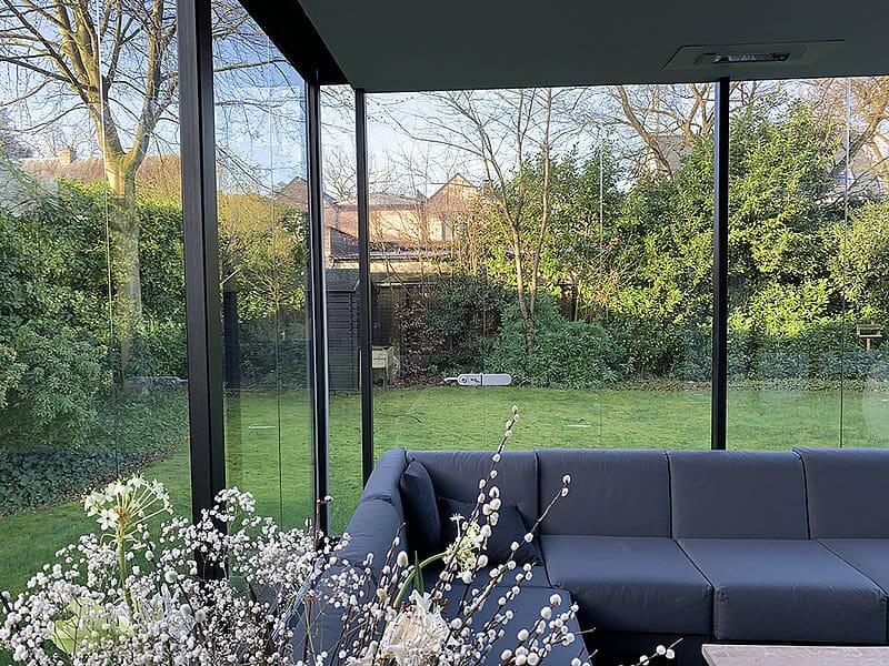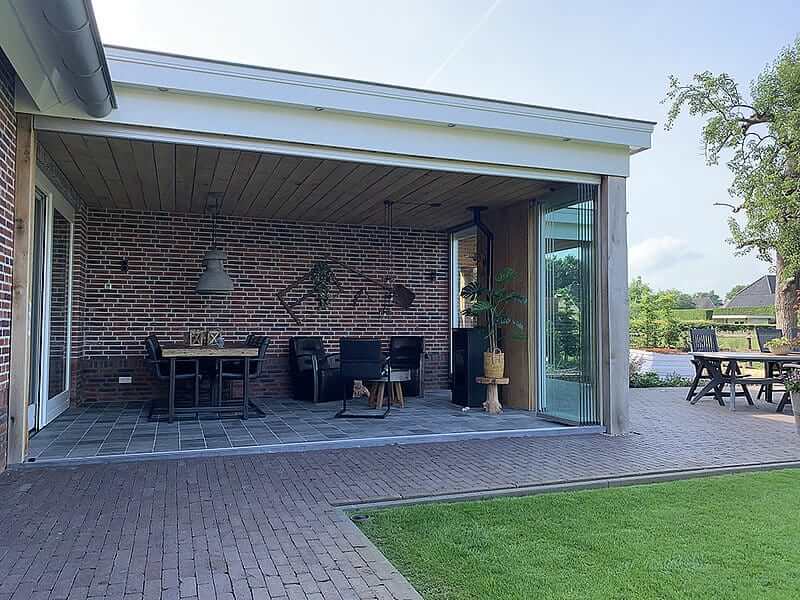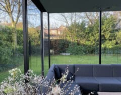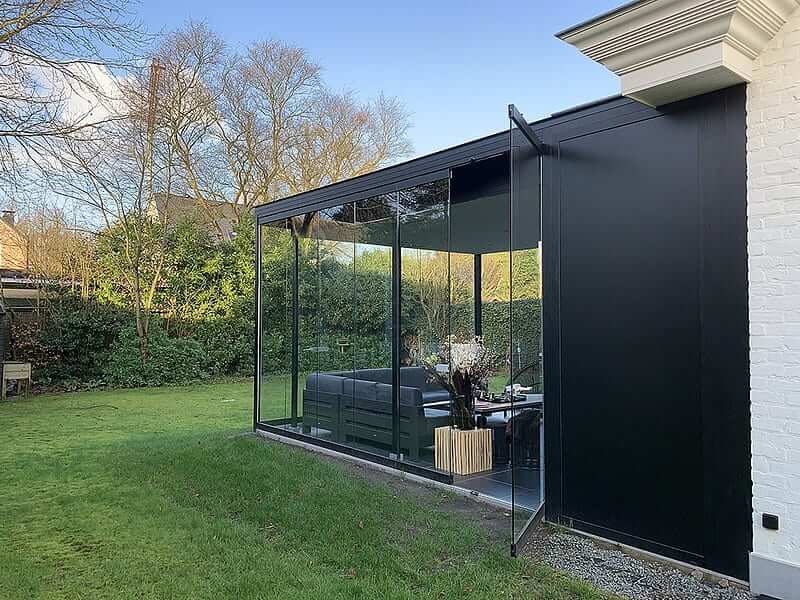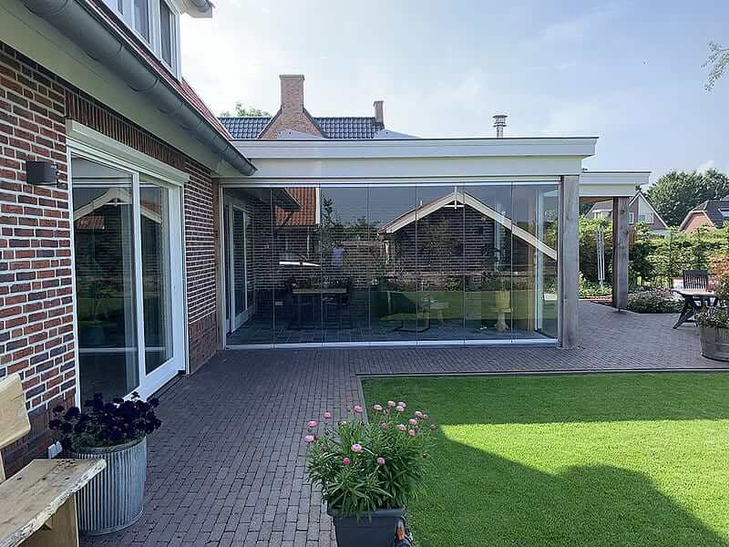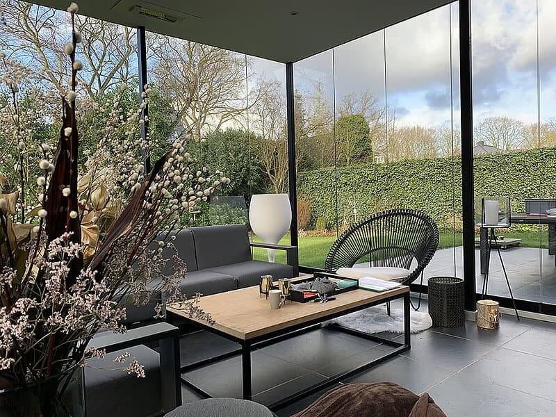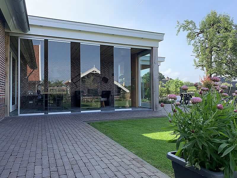 - Vol glas hangend schuif-draai systeem met aluminium kader