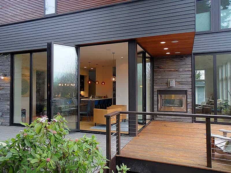 Glazen vouwwand van sterk geïsoleerde aluminium profielen