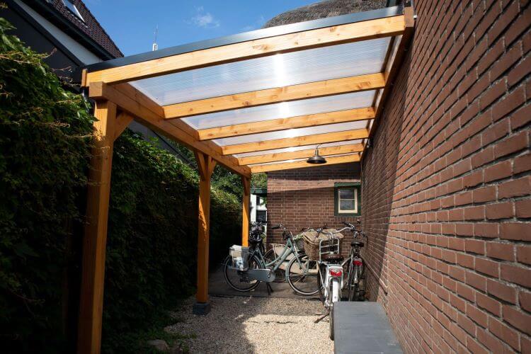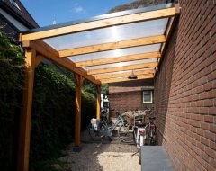 Een overkapping van Douglas heeft een robuustere uitstraling dan gelamineerd lariks. Vanwege de gunstige sterkte-eigenschappen (sterk en taai) is Douglas hout voor bijna alle doeleinden te gebruiken. Door het hout onbehandeld te gebruiken krijgt uw bouwwerk een prachtige natuurlijke uitstraling welke door de jaren heen langzaam vergrijst.