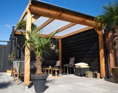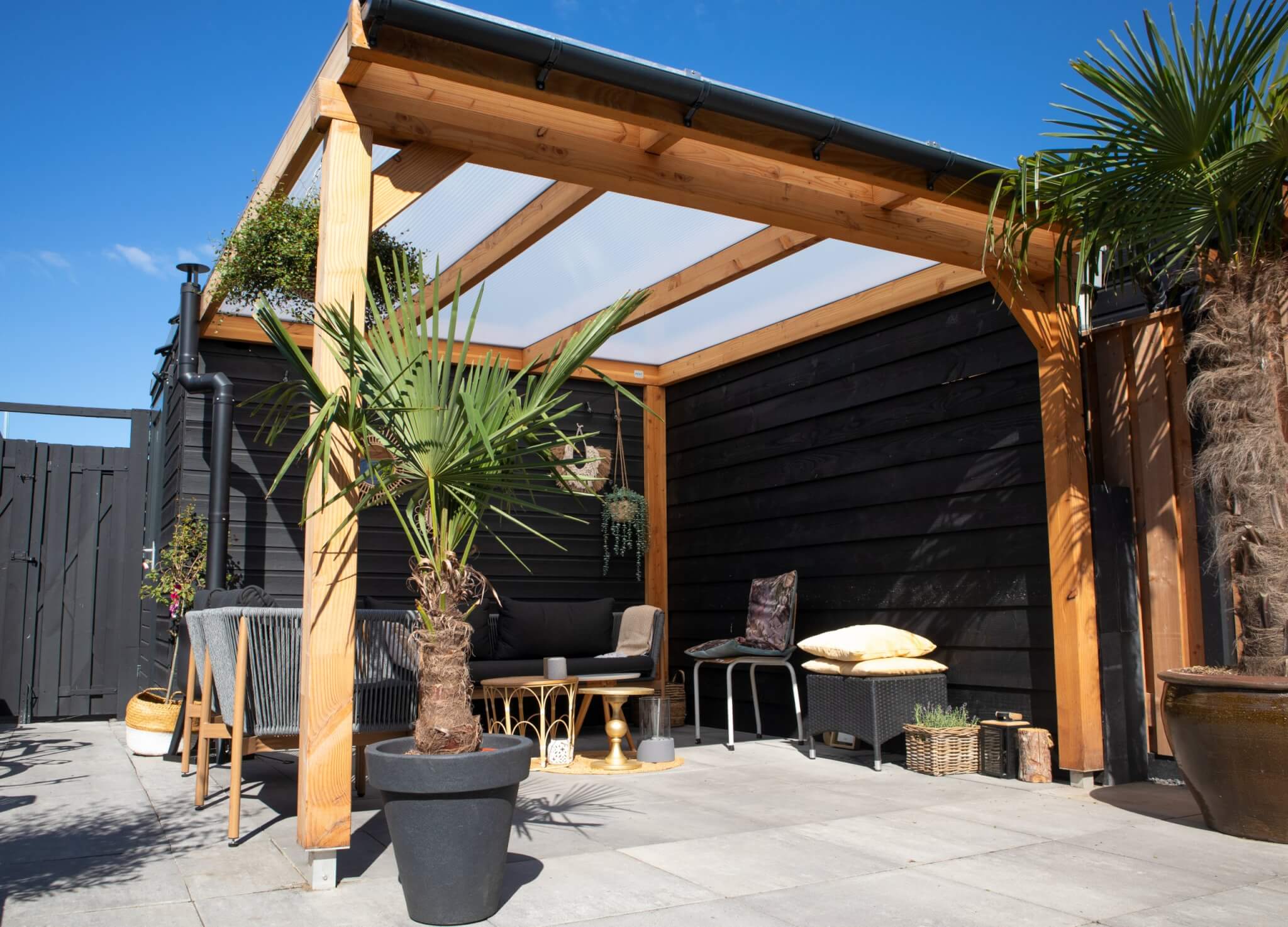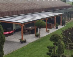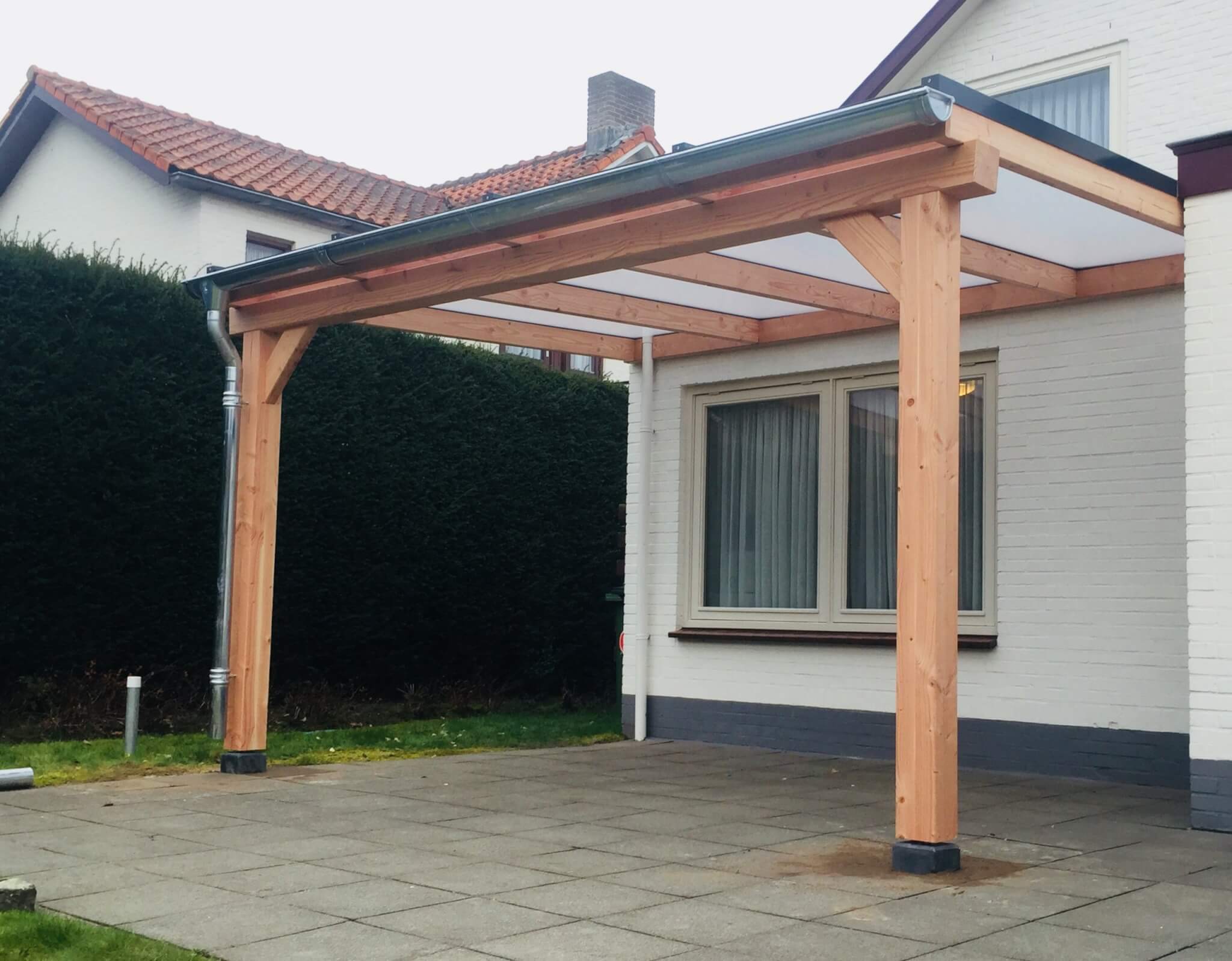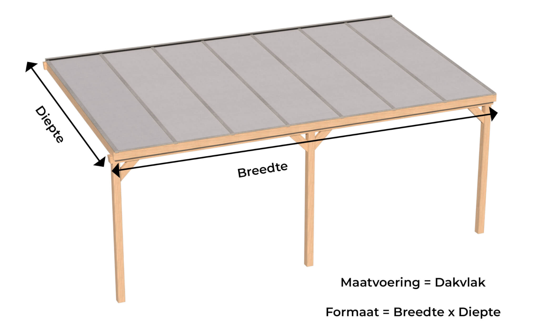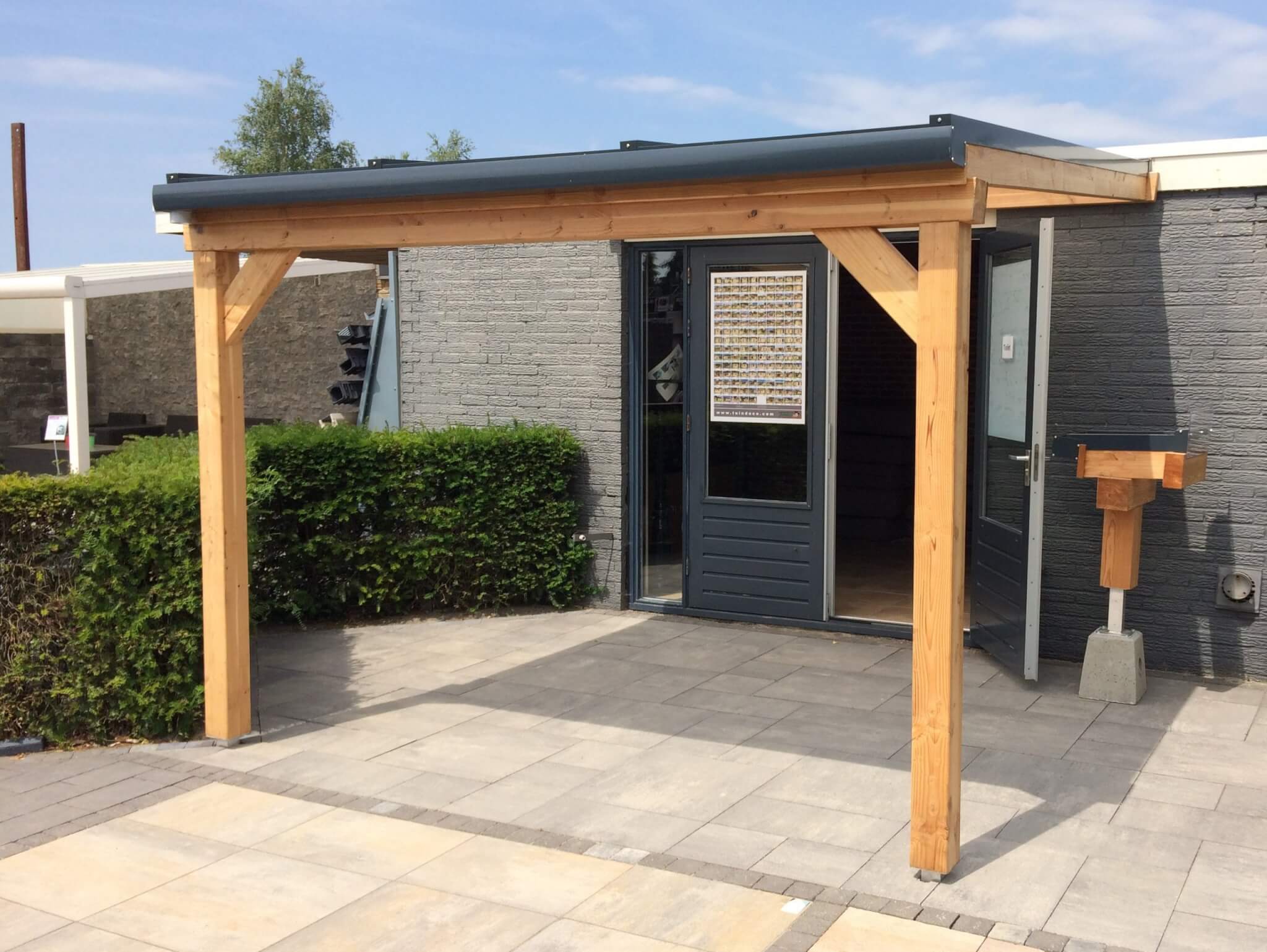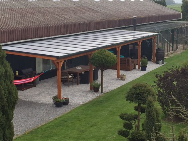 Met meegeleverde daksysteem bestaat uit blanke aluminium profielen. Deze worden vastgeschroefd in de Douglas constructie. De meegeleverde polycarbonaatplaten zijn van Lexan Thermoclear (3TS structuur). De platen hebben een hoge lichttransmissie en zijn volledig UV-werend.