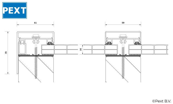 - Kliklijsten in antraciet (Ral7016), zwart (Ral9005) of gebroken wit (Ral9010) incl. rubbers en