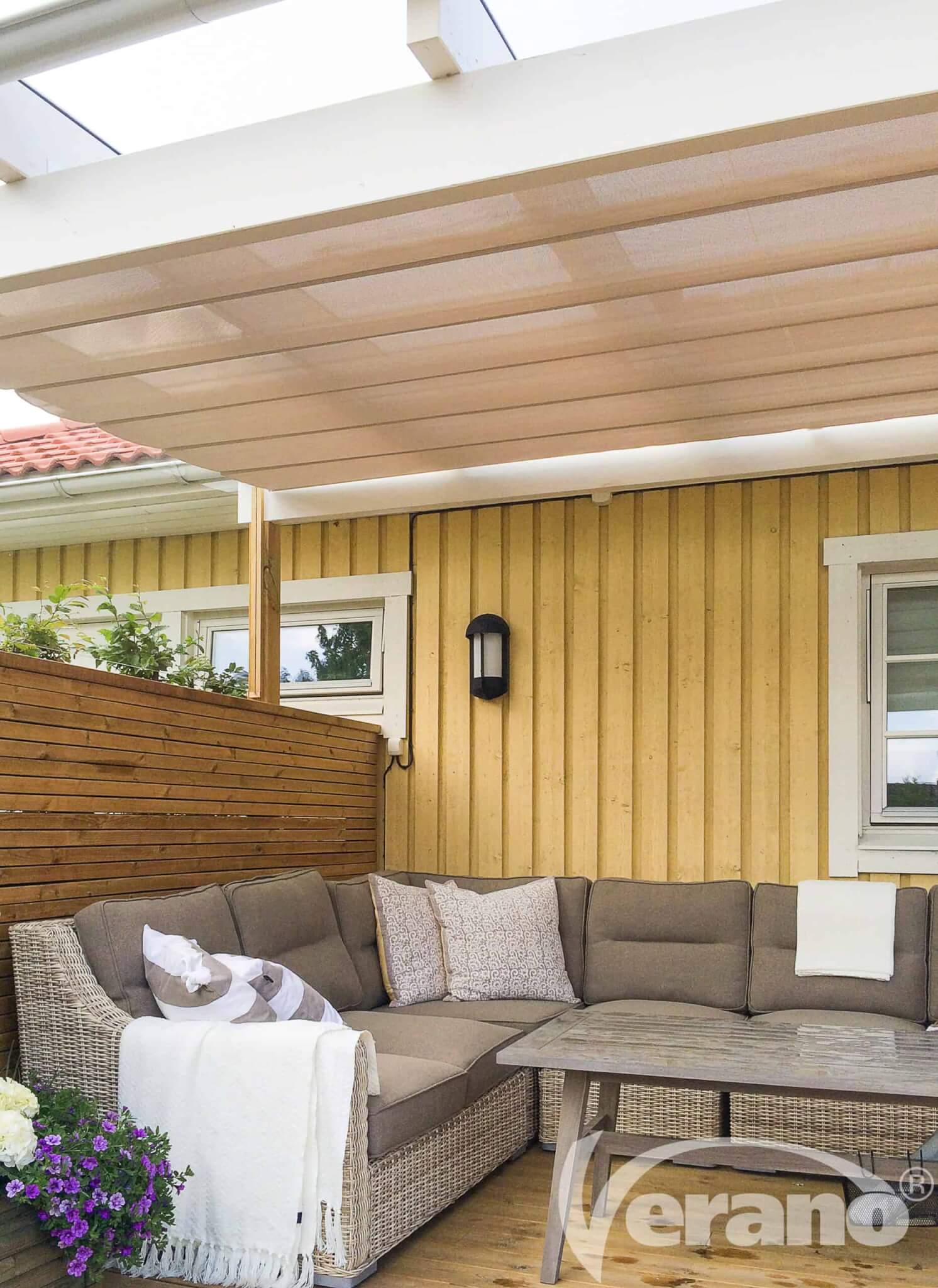 Hebt u een terrasoverkapping of serre en zoekt u sfeervolle verandazonwering voor aan de binnenzijde? Het zonwerende doek van de Tallinn verandazonwering wordt gedrapeerd aan de onderzijde van het dak en hangt dus niet strak gespannen over het dak. Kortom: sfeervolle en effectieve verandazonwering voor uw serre of tuinkamer!