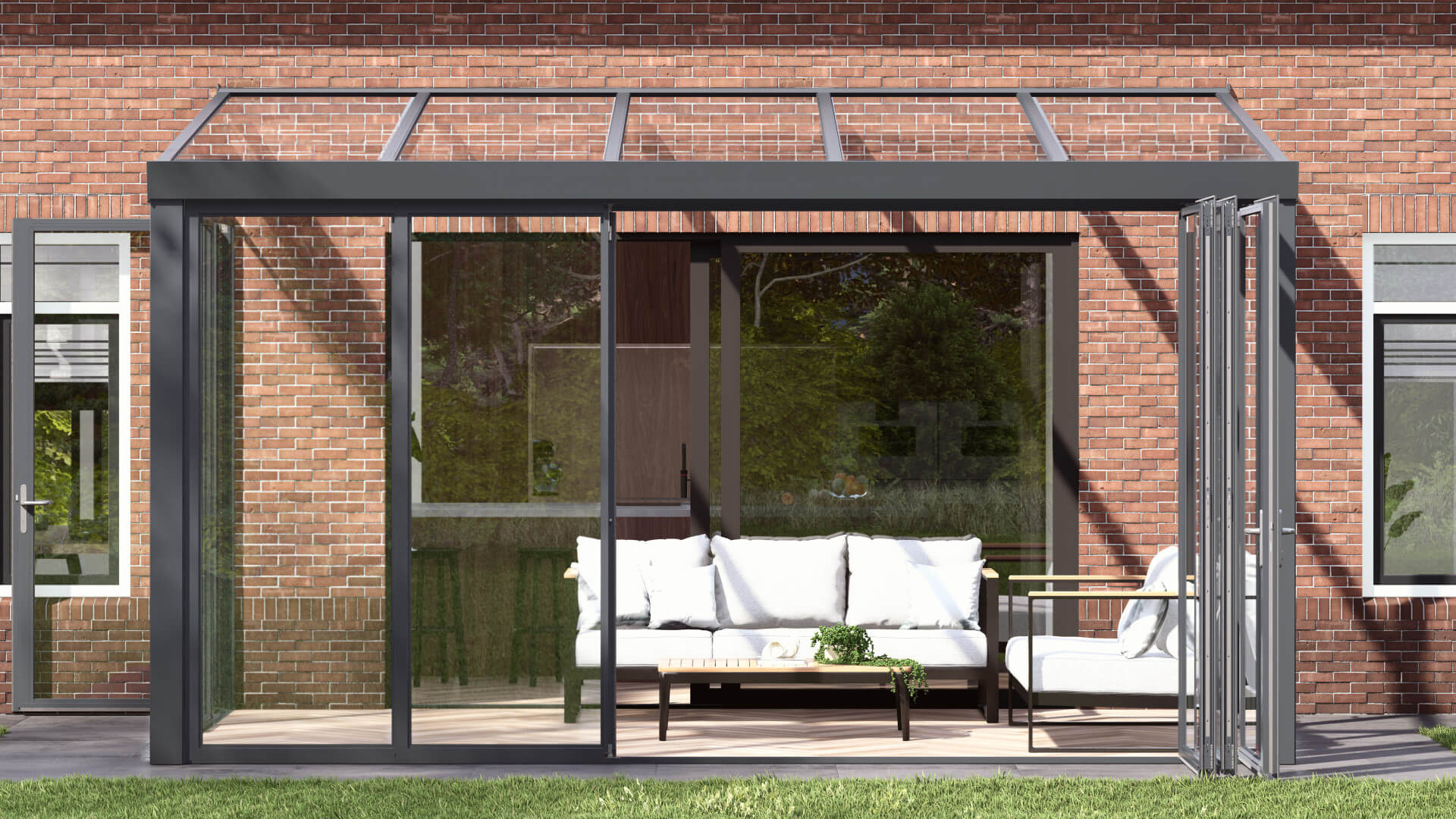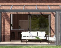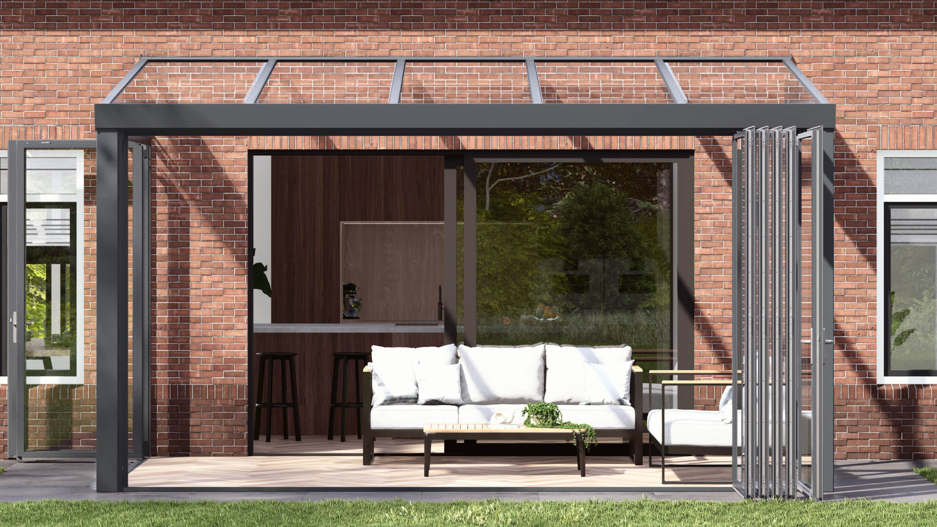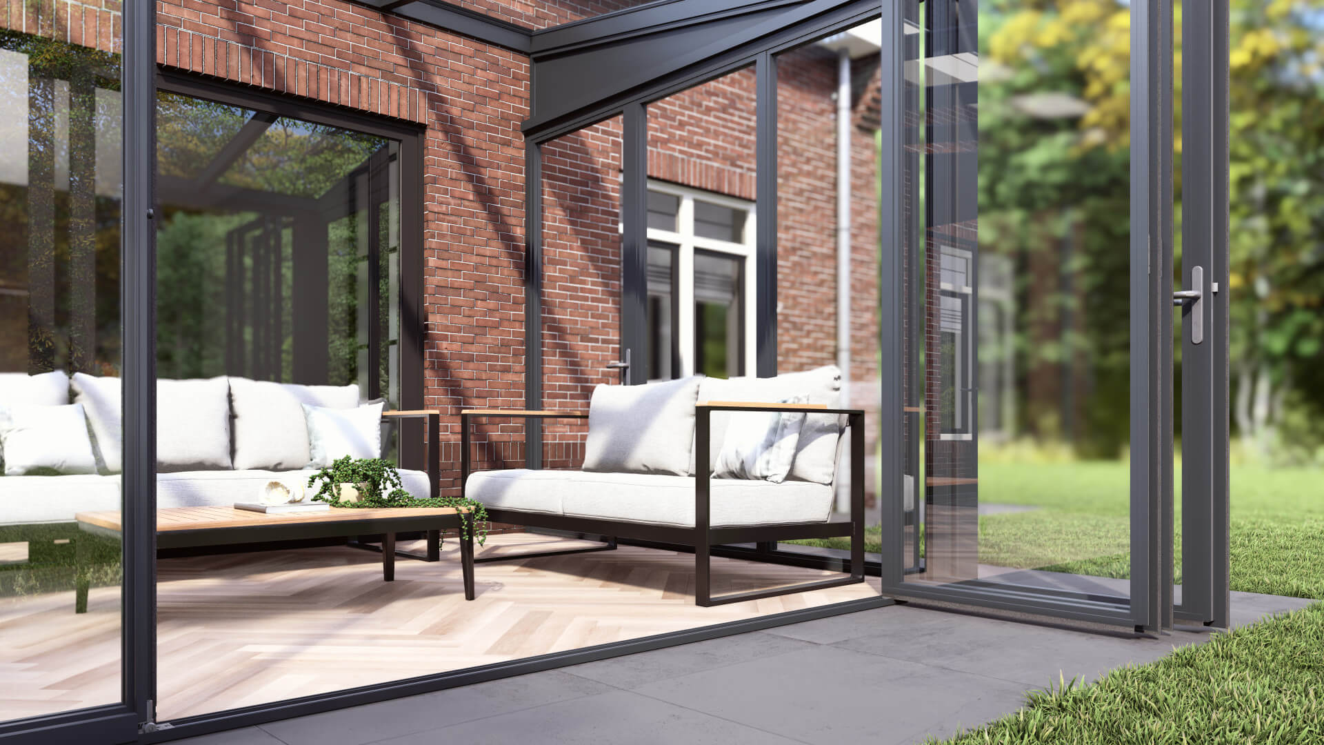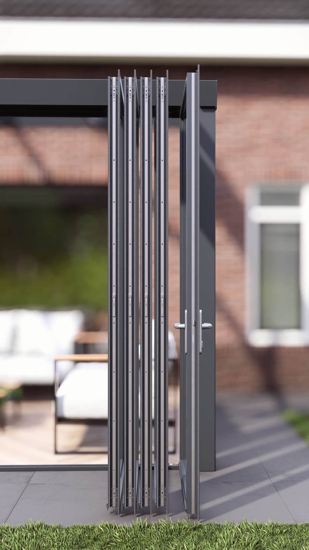 Ook aan de constructie is zorgvuldig gedacht. Een prettige bijkomstigheid is bijvoorbeeld het ‘onderdragende systeem’. Daarmee vormen de panelen geen belasting voor de constructie boven het kozijn. Daarnaast is het product zo ontwikkeld dat het een mooie toevoeging biedt aan de overkappingen van Deponti, maar ook past bij andersoortige constructies. Als klap op de vuurpijl is de Viewline constructie voorzien van één deurpaneel. Zo creëert de eindgebruiker een extra in- en uitloopdeur, die voorzien is van een mooie klink en veilig slot.