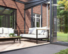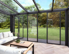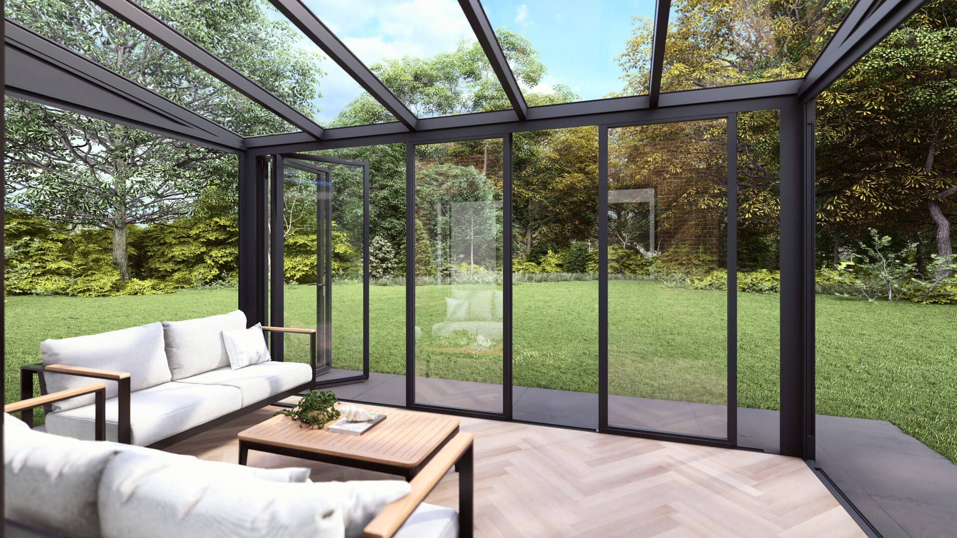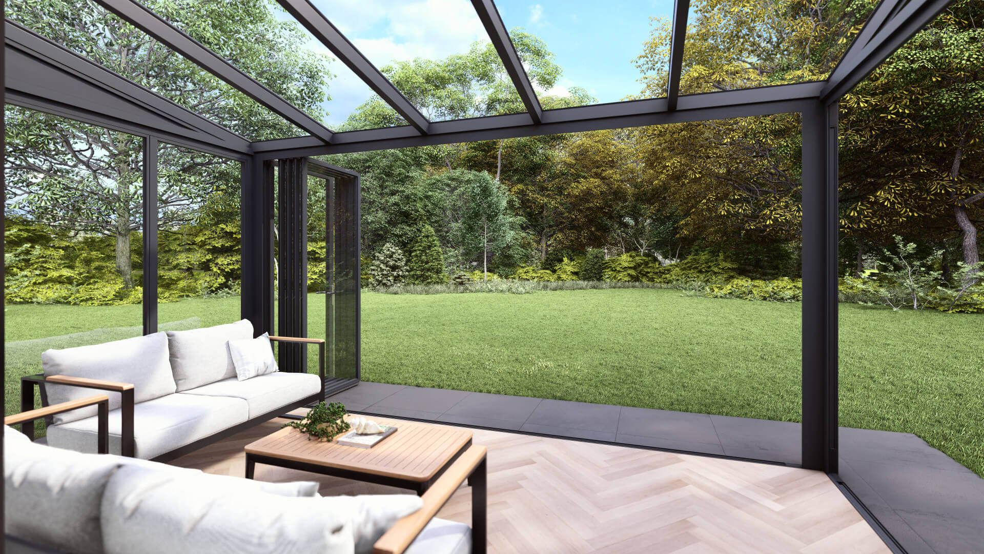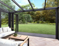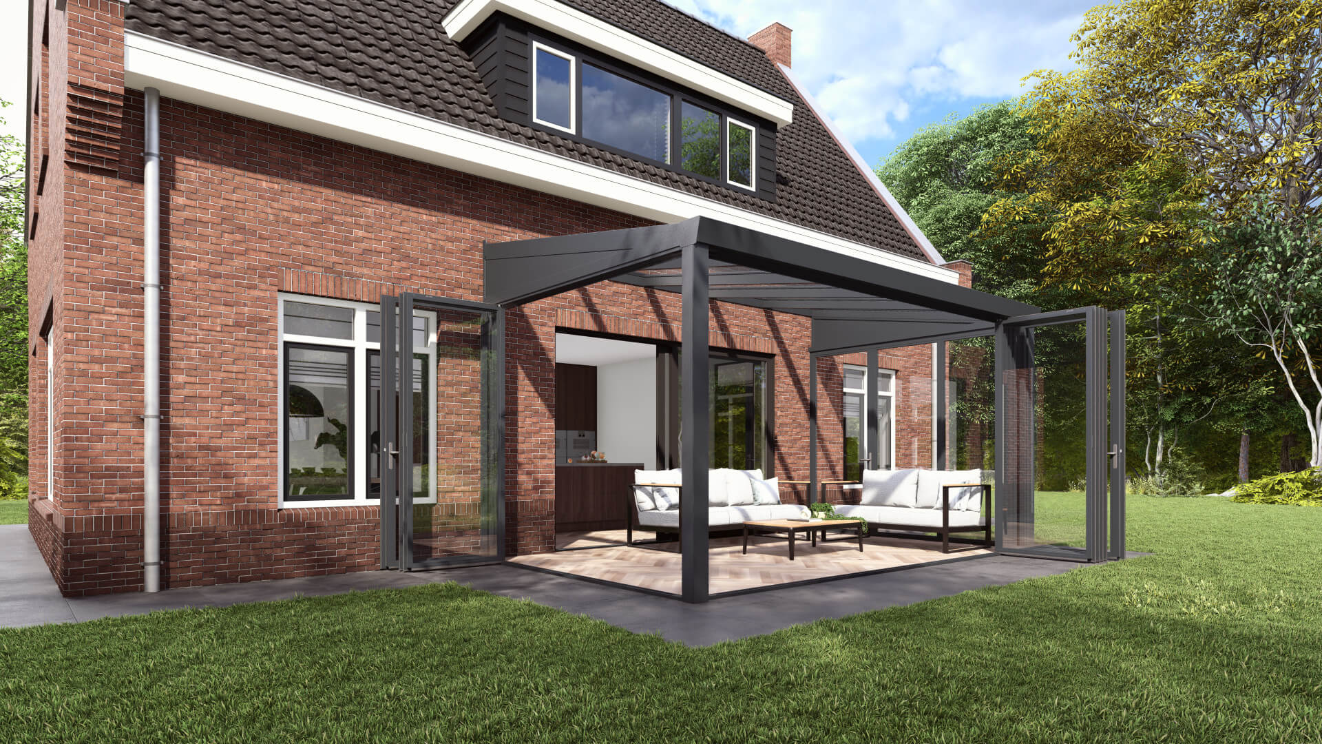 Ook aan de constructie is zorgvuldig gedacht. Een prettige bijkomstigheid is bijvoorbeeld het ‘onderdragende systeem’. Daarmee vormen de panelen geen belasting voor de constructie boven het kozijn. Daarnaast is het product zo ontwikkeld dat het een mooie toevoeging biedt aan de overkappingen van Deponti, maar ook past bij andersoortige constructies. Als klap op de vuurpijl is de Viewline constructie voorzien van één deurpaneel. Zo creëert de eindgebruiker een extra in- en uitloopdeur, die voorzien is van een mooie klink en veilig slot.