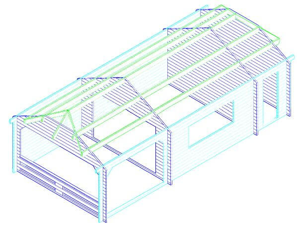 Hier worden zowel de binnen- als de buitenzijden van de wanden gecoat, maar daarnaast ook de dakbalken, dakplanken en de ramen & deuren.