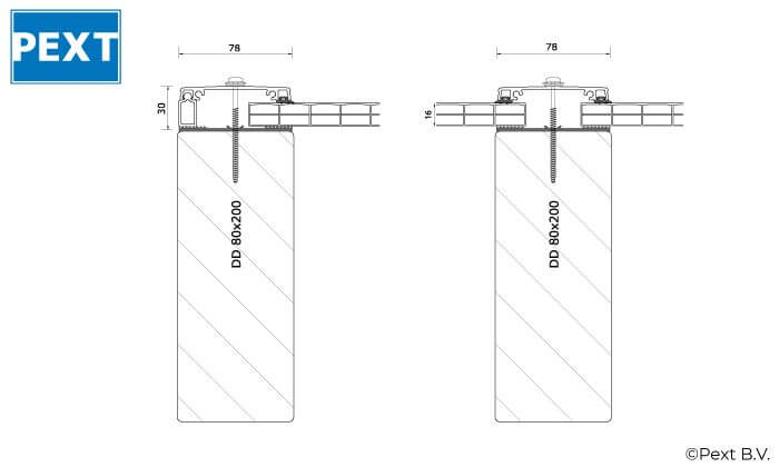- Aluminium profielen 78 mm incl. beglazingsrubber 2,5mm en vullatten t.b.v. zijafsluiting.