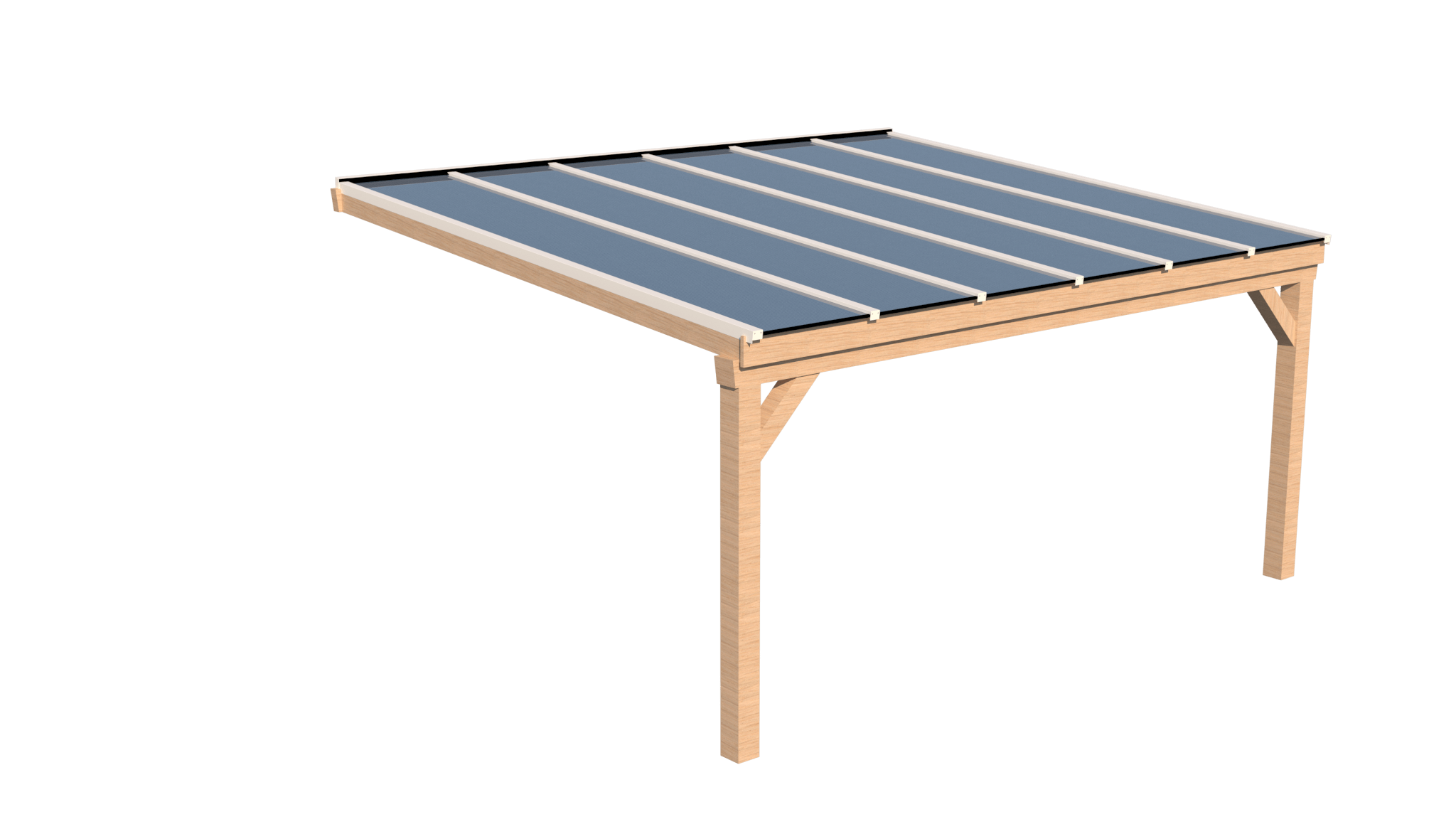 - Liggers 80x200mm, muurbalk (alleen bij muuraanbouw) en schoren 140x140mm.