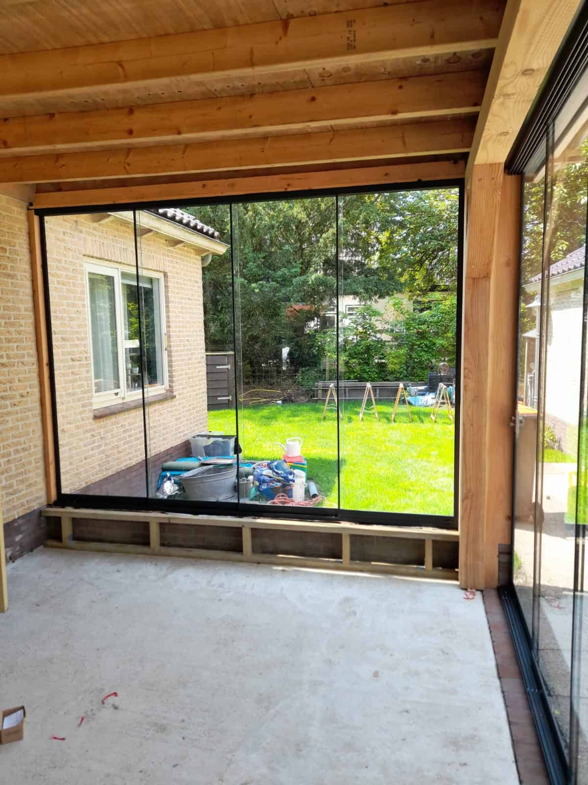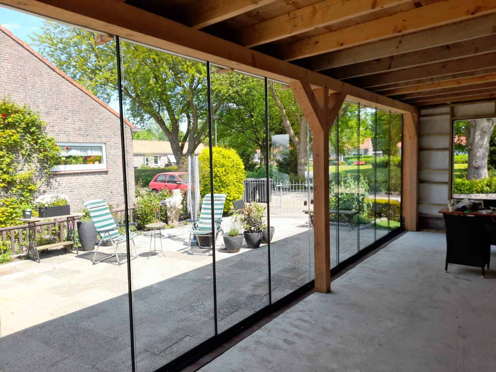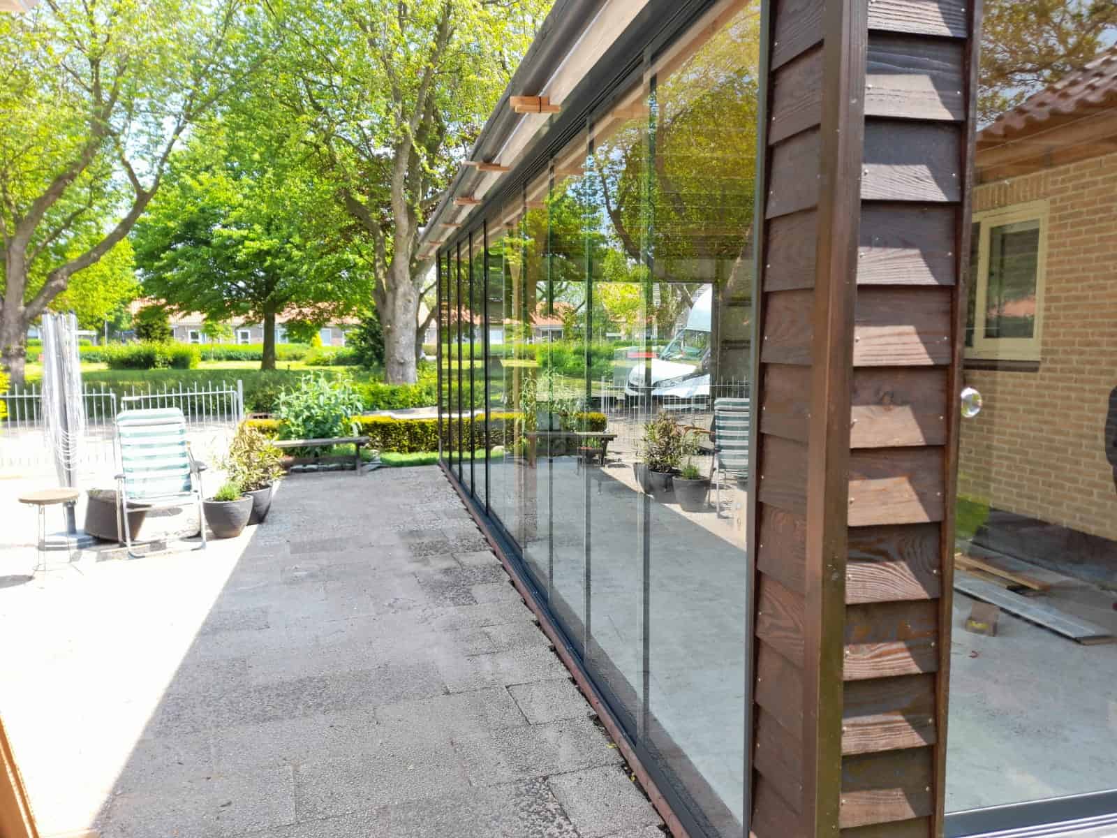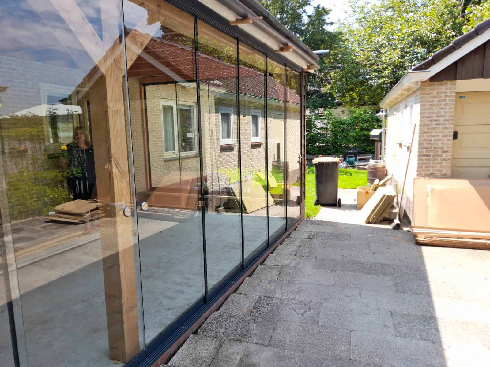 Geleverd en gemonteerd VG15 glazen schuifwanden op maat gemaakt.